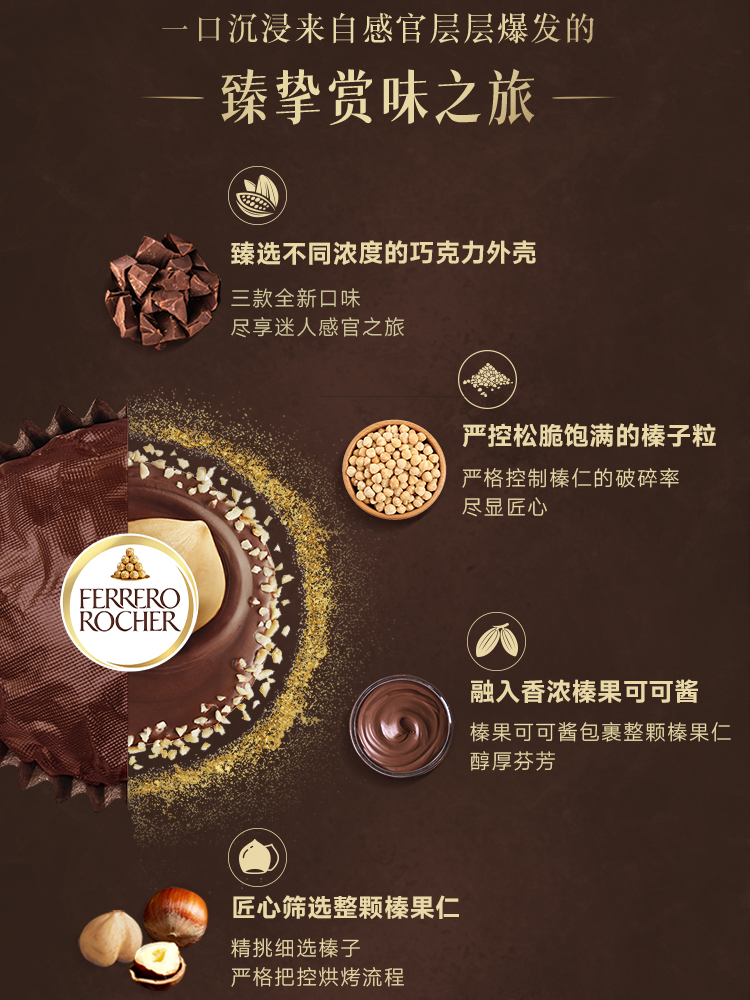 费列罗榛果威化黑巧克力制品24粒装