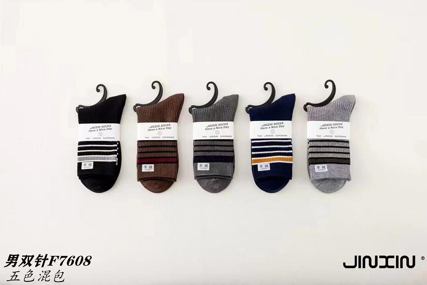 锦鑫男双针羊绒袜F7608