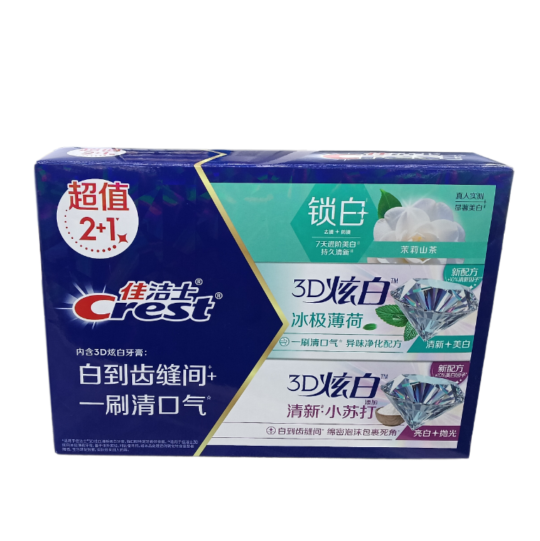 佳洁士3D炫白清新亮白+冰极薄荷+锁白茉莉山茶味