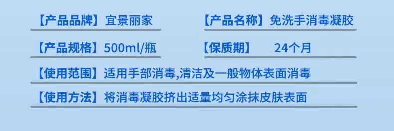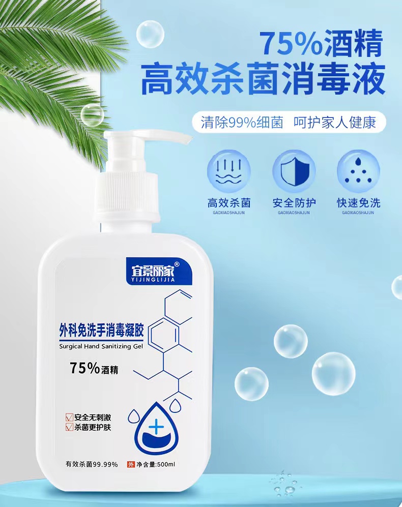 宜景丽家75%酒精外科免洗手消毒凝胶