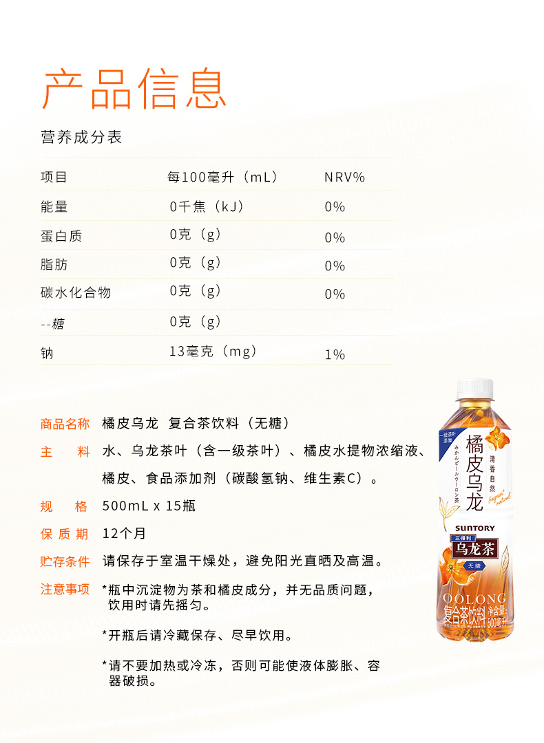 三得利橘皮乌龙茶无糖