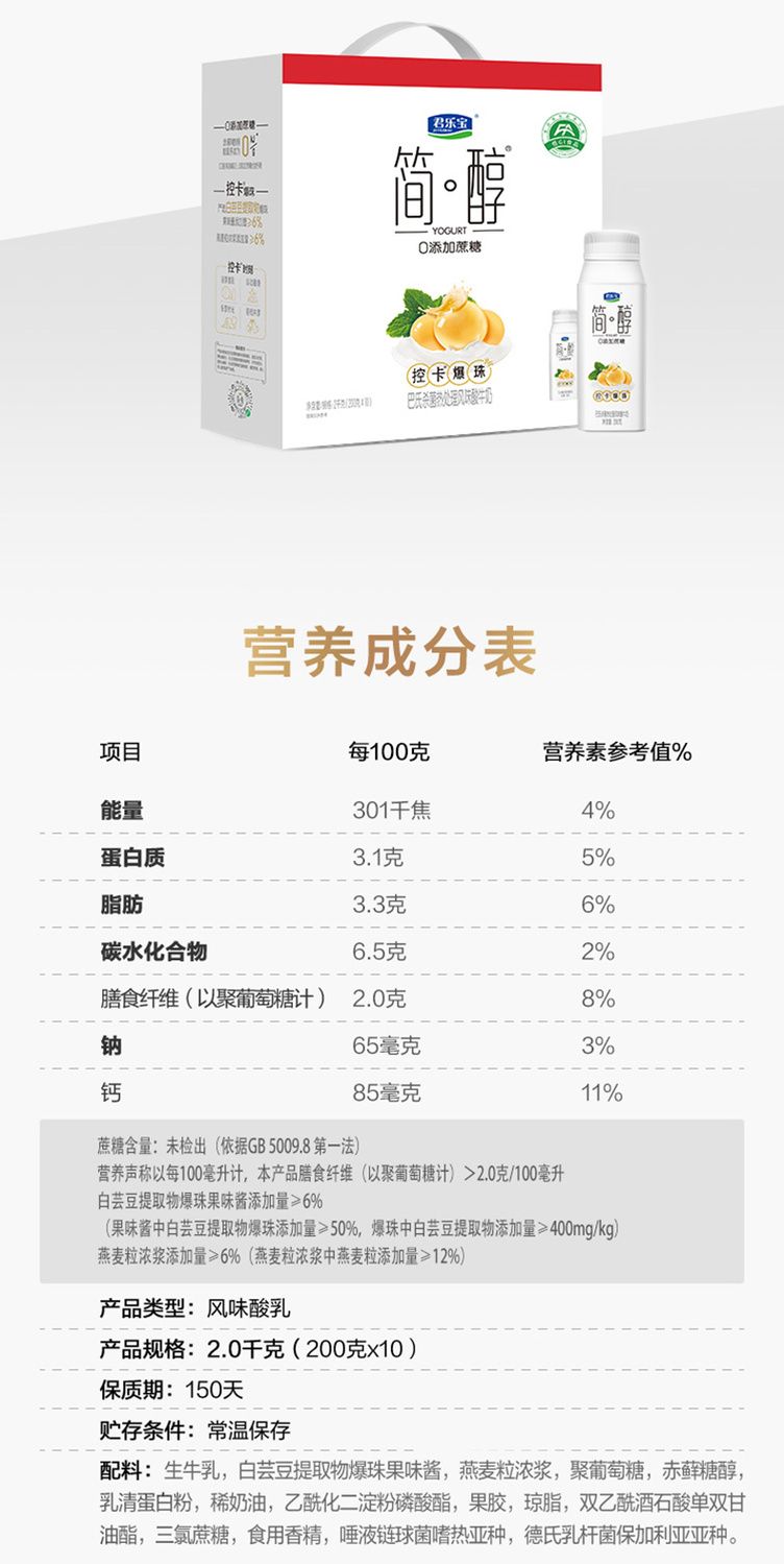 君乐宝简醇零添加白芸豆爆珠酸奶