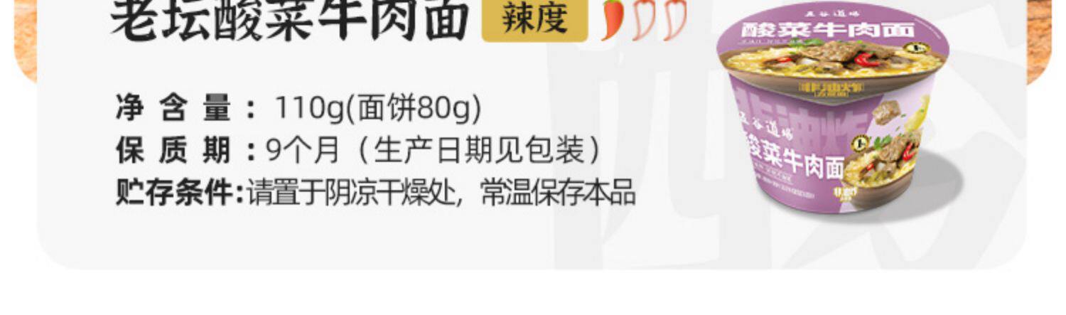 五谷道场老坛酸菜牛肉面桶装