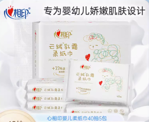 心相印DT16040婴儿柔乳霜三层塑装纸抽5连包
