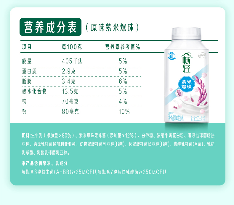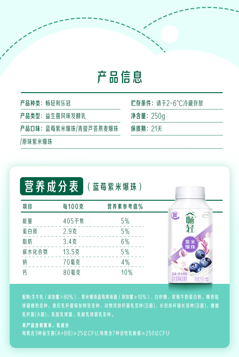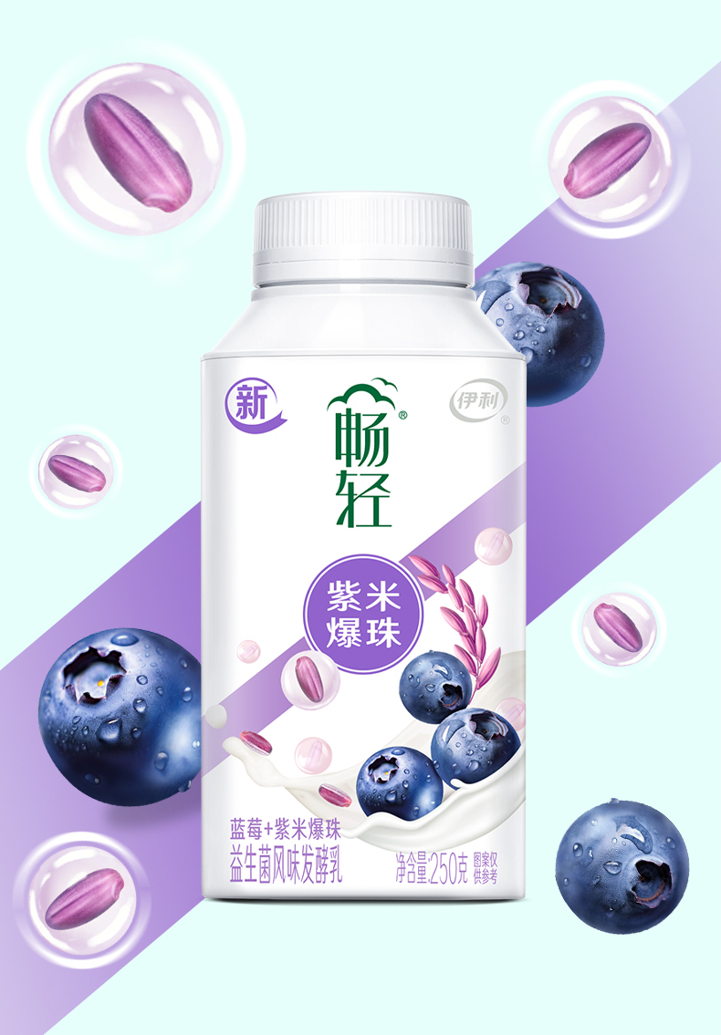 伊利畅轻风味发酵乳蓝莓紫米爆珠