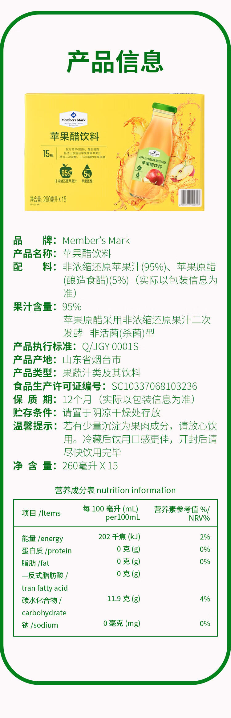 山姆苹果醋饮料
