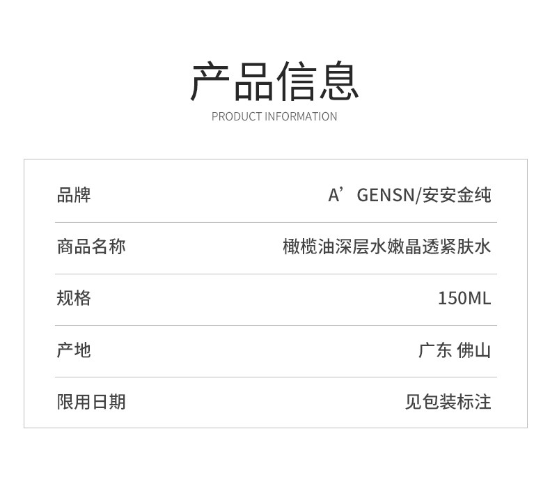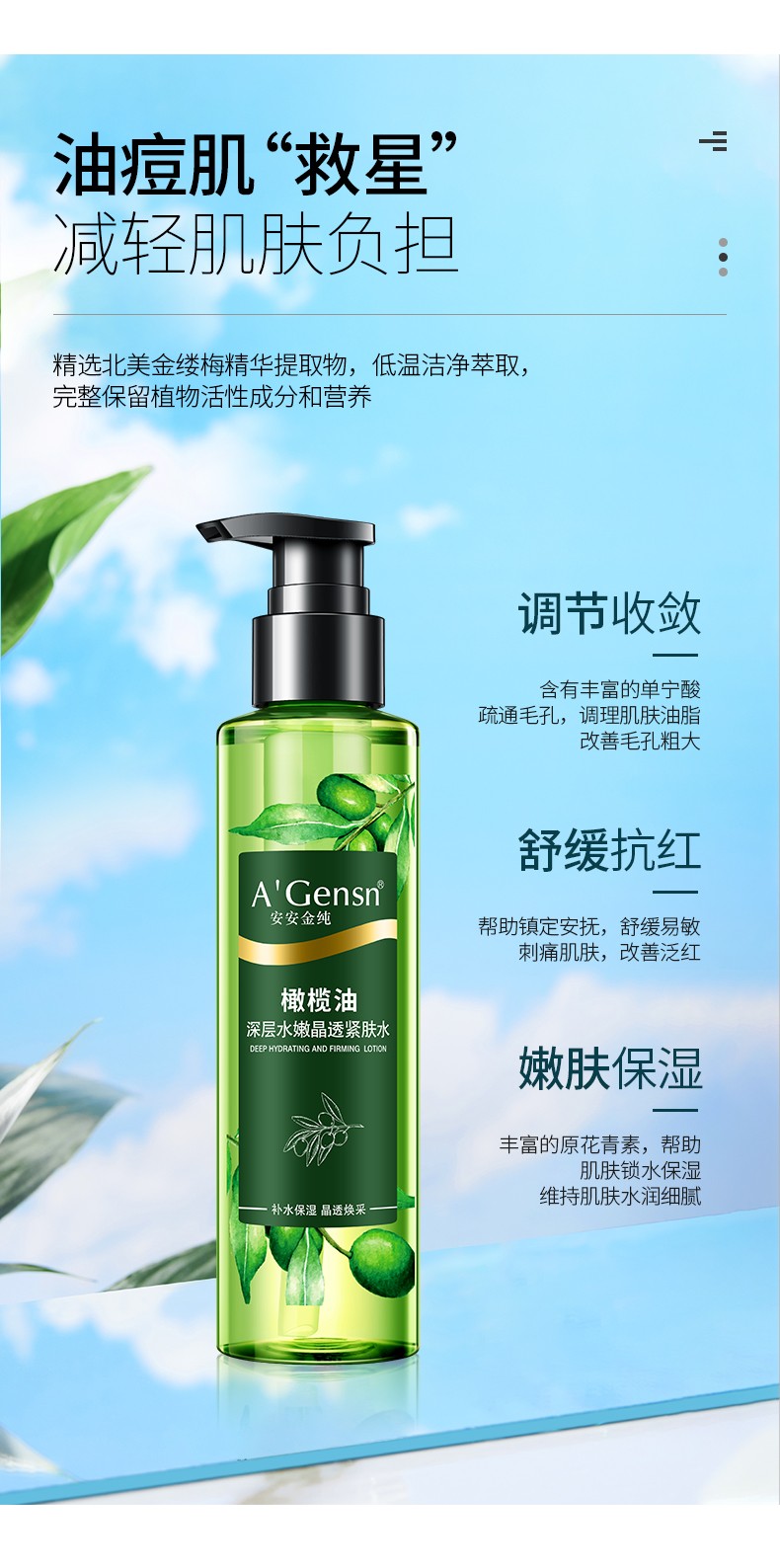 安安金纯橄榄油深层水嫩晶透紧肤水