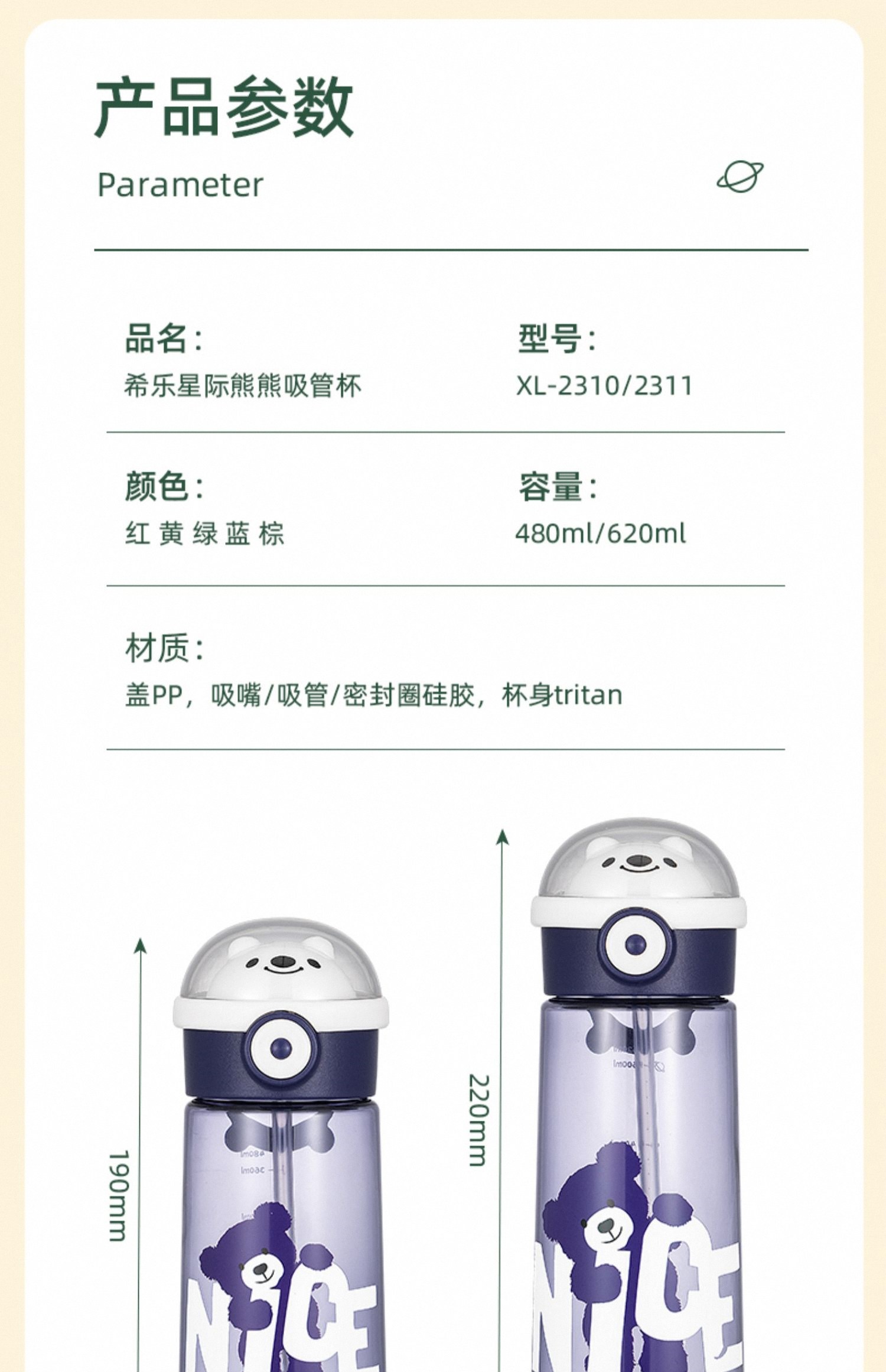希乐XL2311星际熊熊吸管杯-蓝/棕