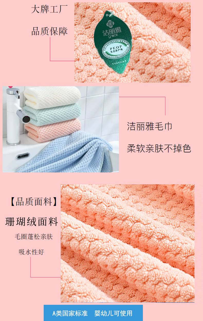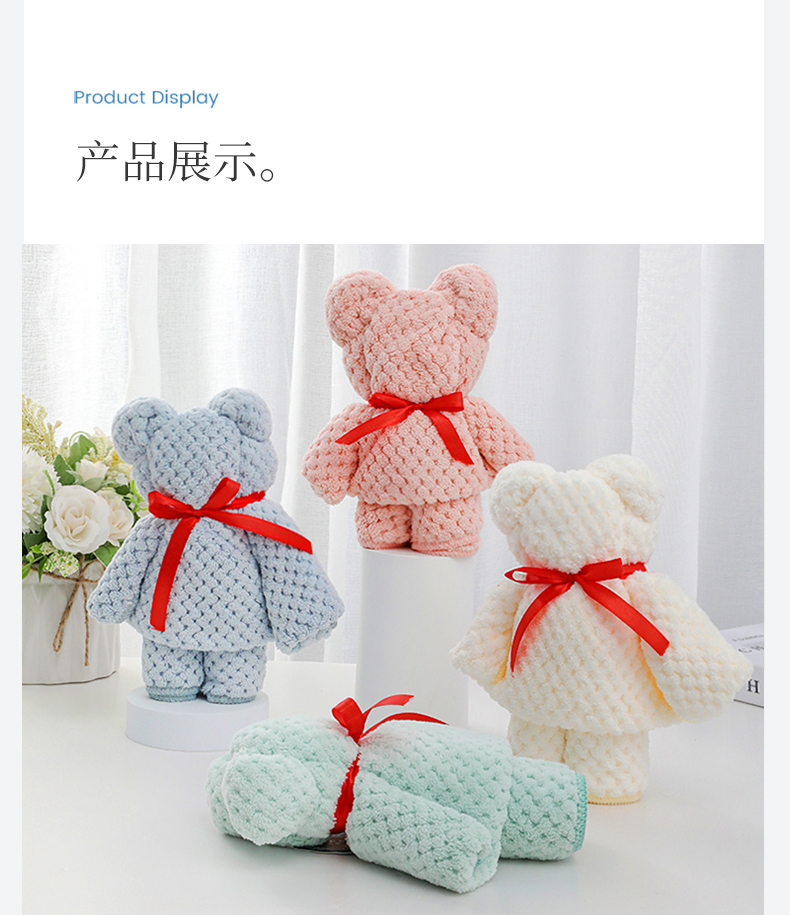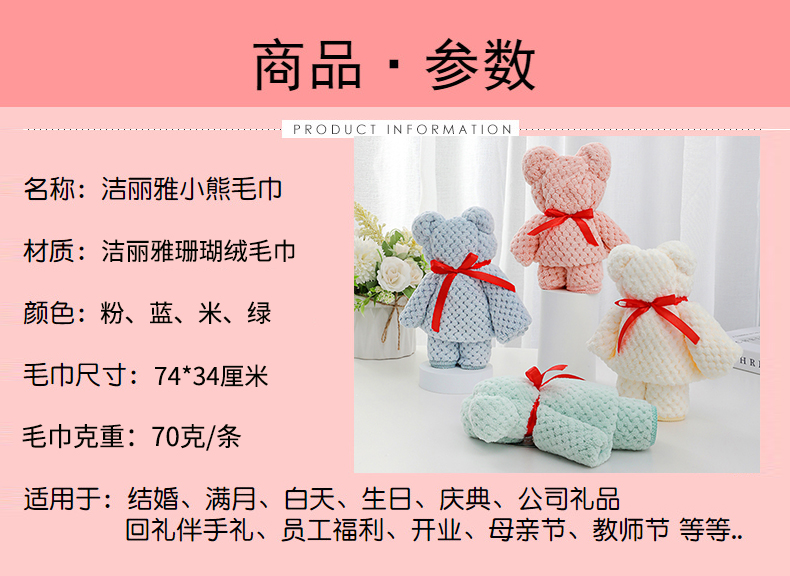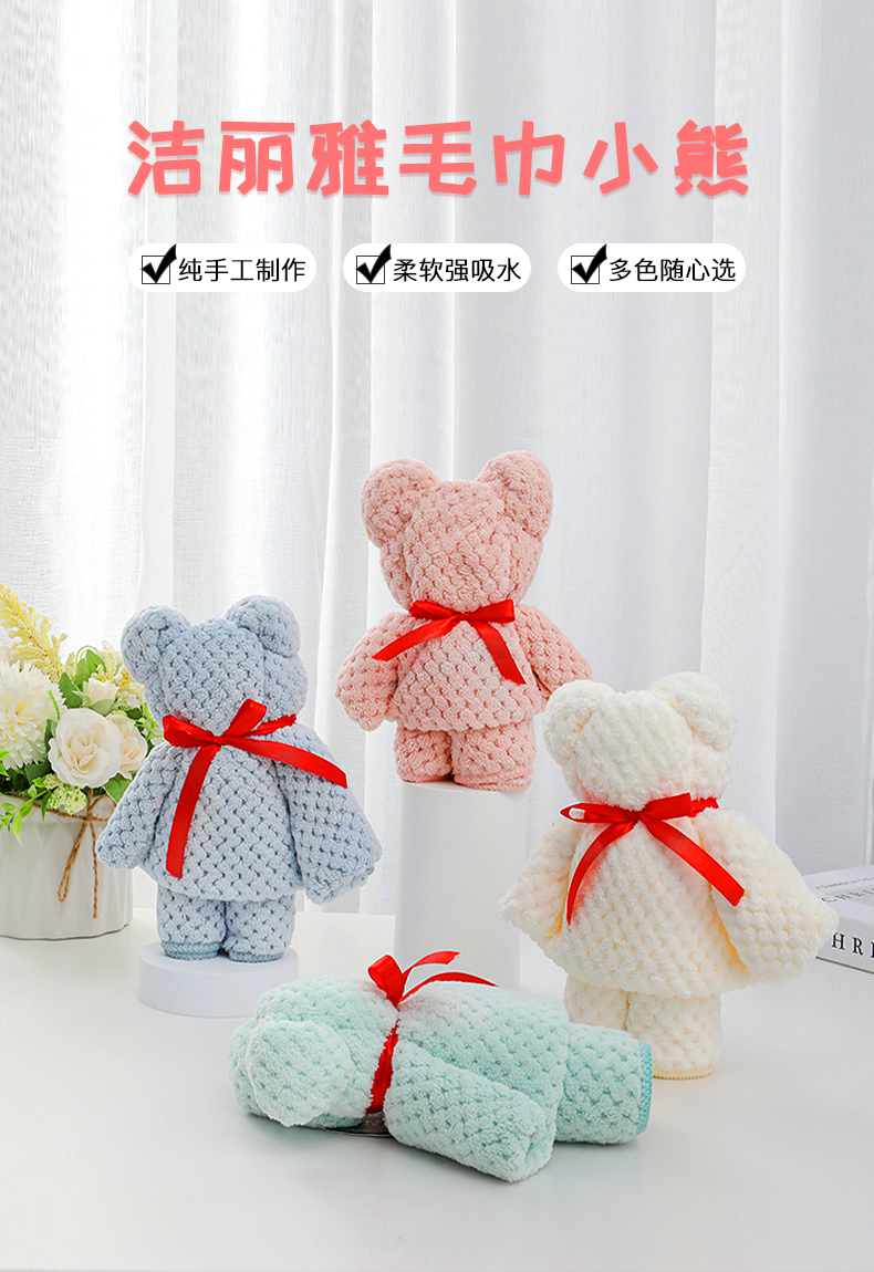 洁丽雅7583珊瑚绒小熊毛巾2条装(袋)