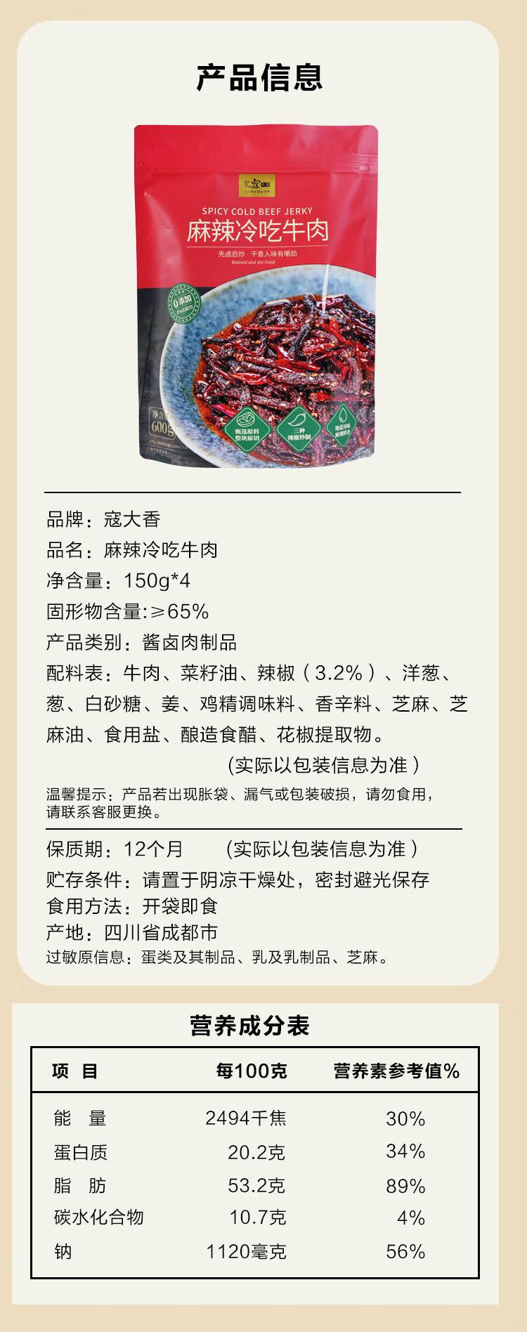 山姆寇大香麻辣冷吃牛肉