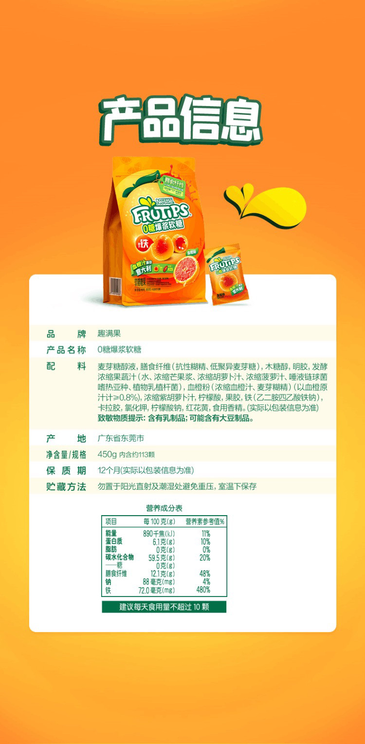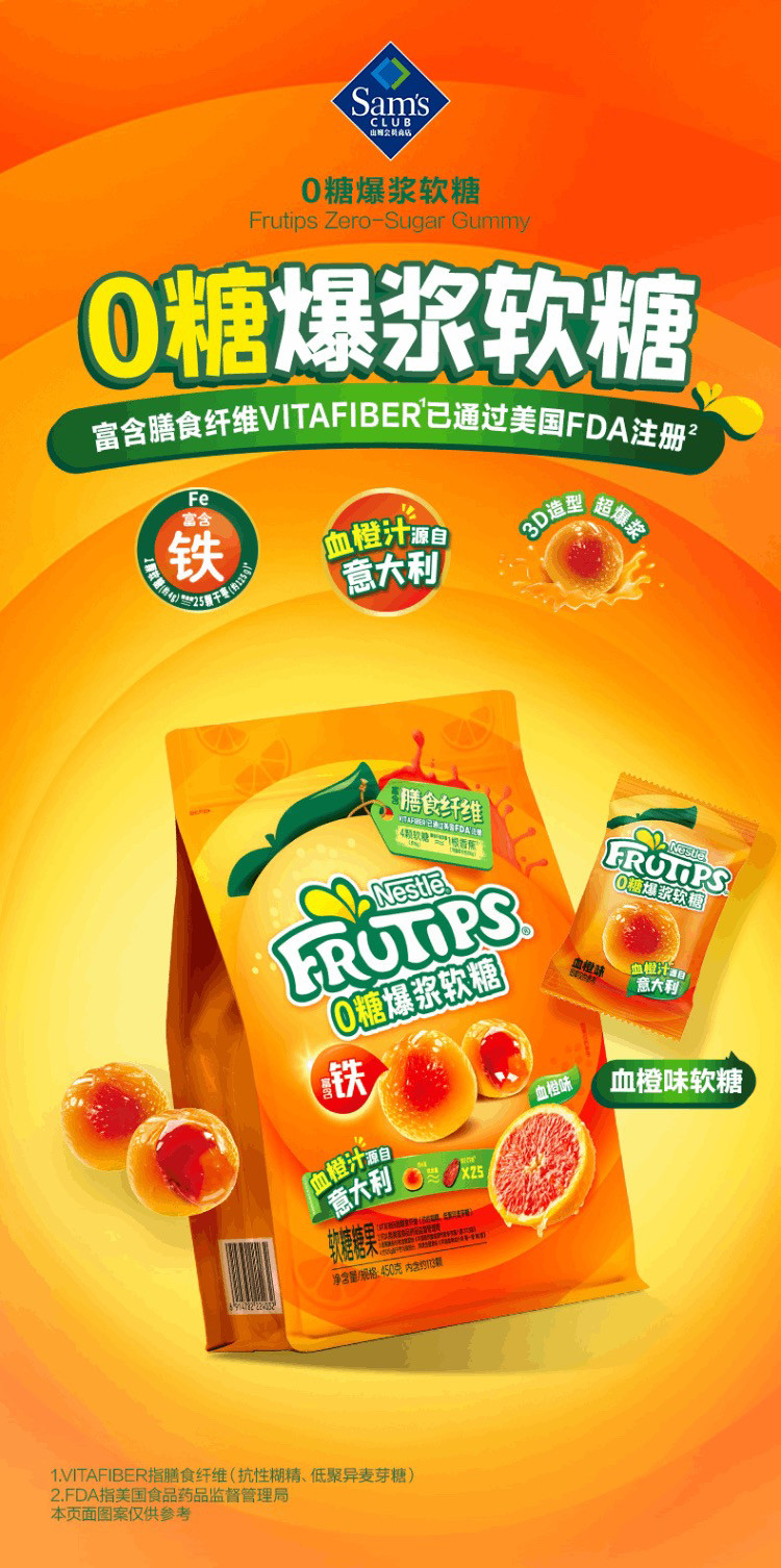 山姆0糖爆浆软糖血橙味