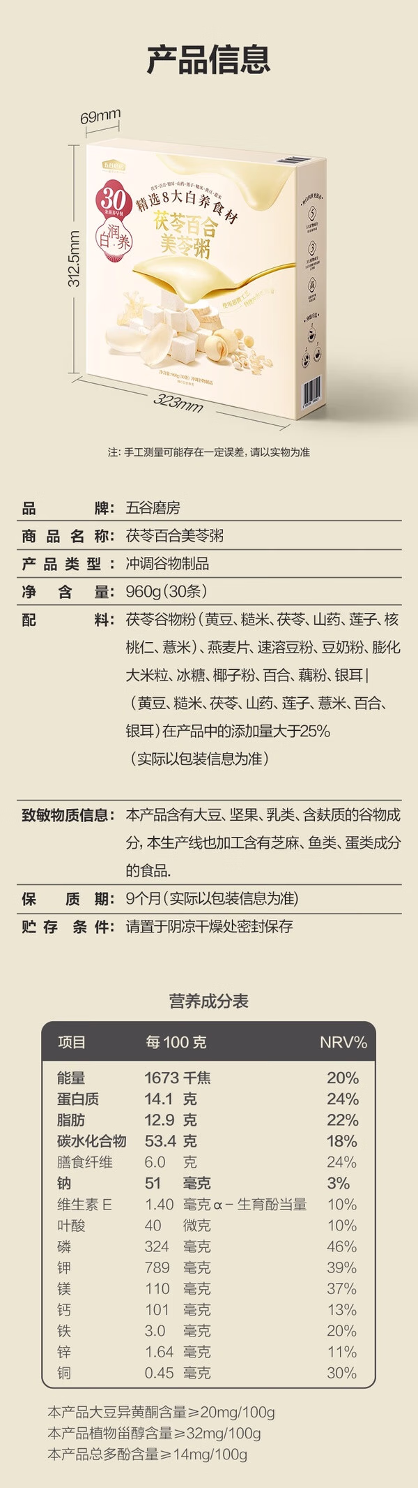 山姆五谷磨房茯苓百合美苓粥