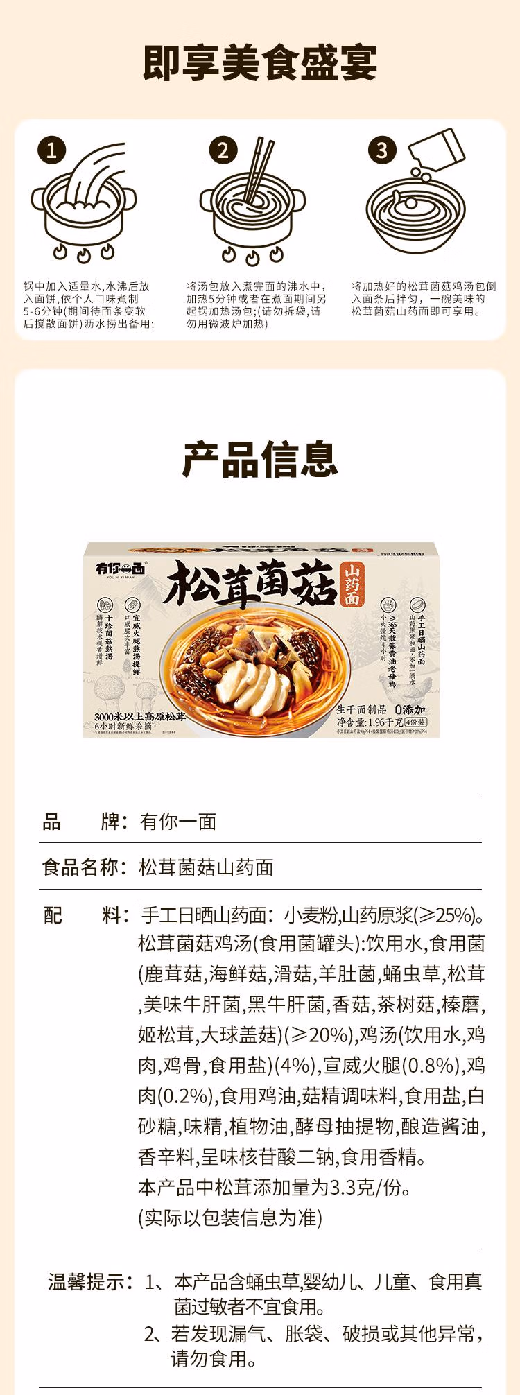 山姆有你一面松茸菌菇山药面
