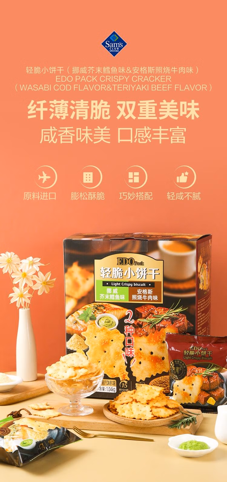 山姆轻脆小饼干(挪威芥末鳕鱼味+安格斯照烧牛肉味)