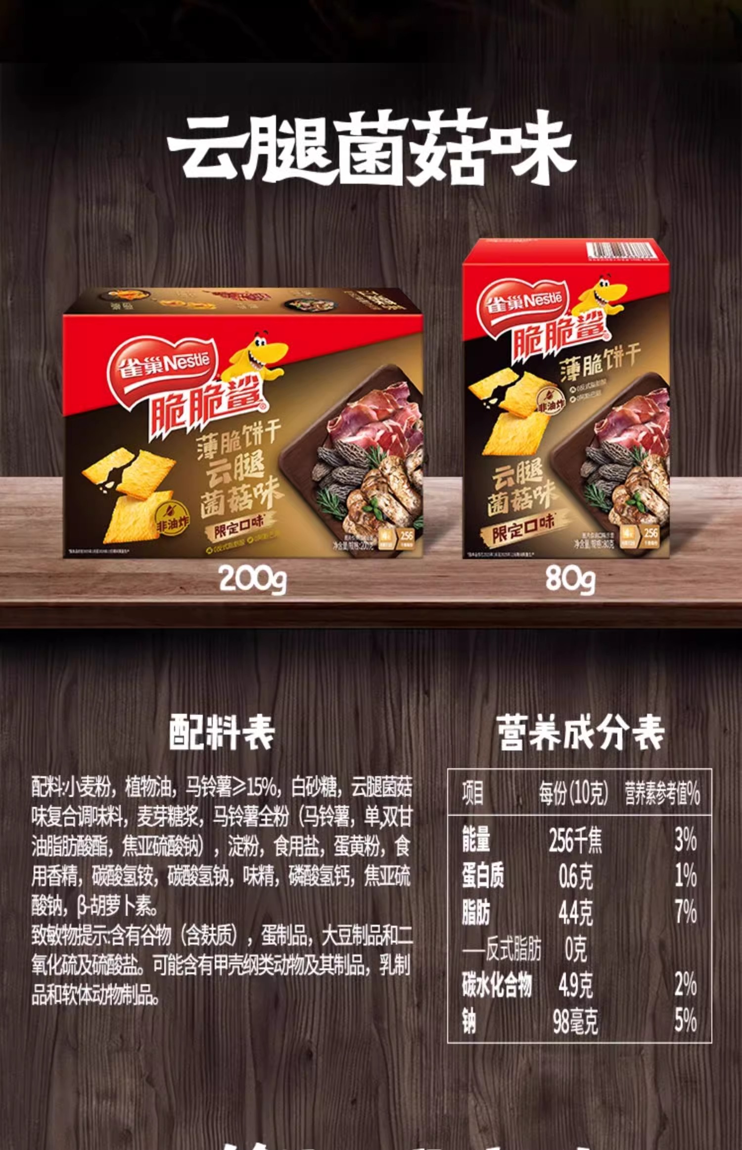 雀巢脆脆鲨薄饼饼干云腿菌菇味