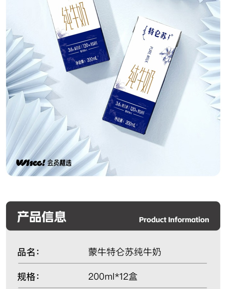 特仑苏纯牛奶全脂灭菌乳利乐苗条装(大师限定)