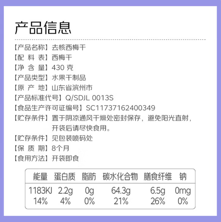 七鲜去核西梅干