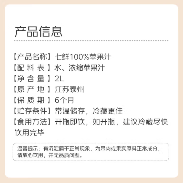 七鲜100%苹果汁