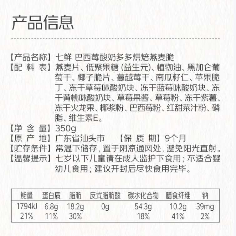 七鲜巴西莓酸奶多多燕麦脆