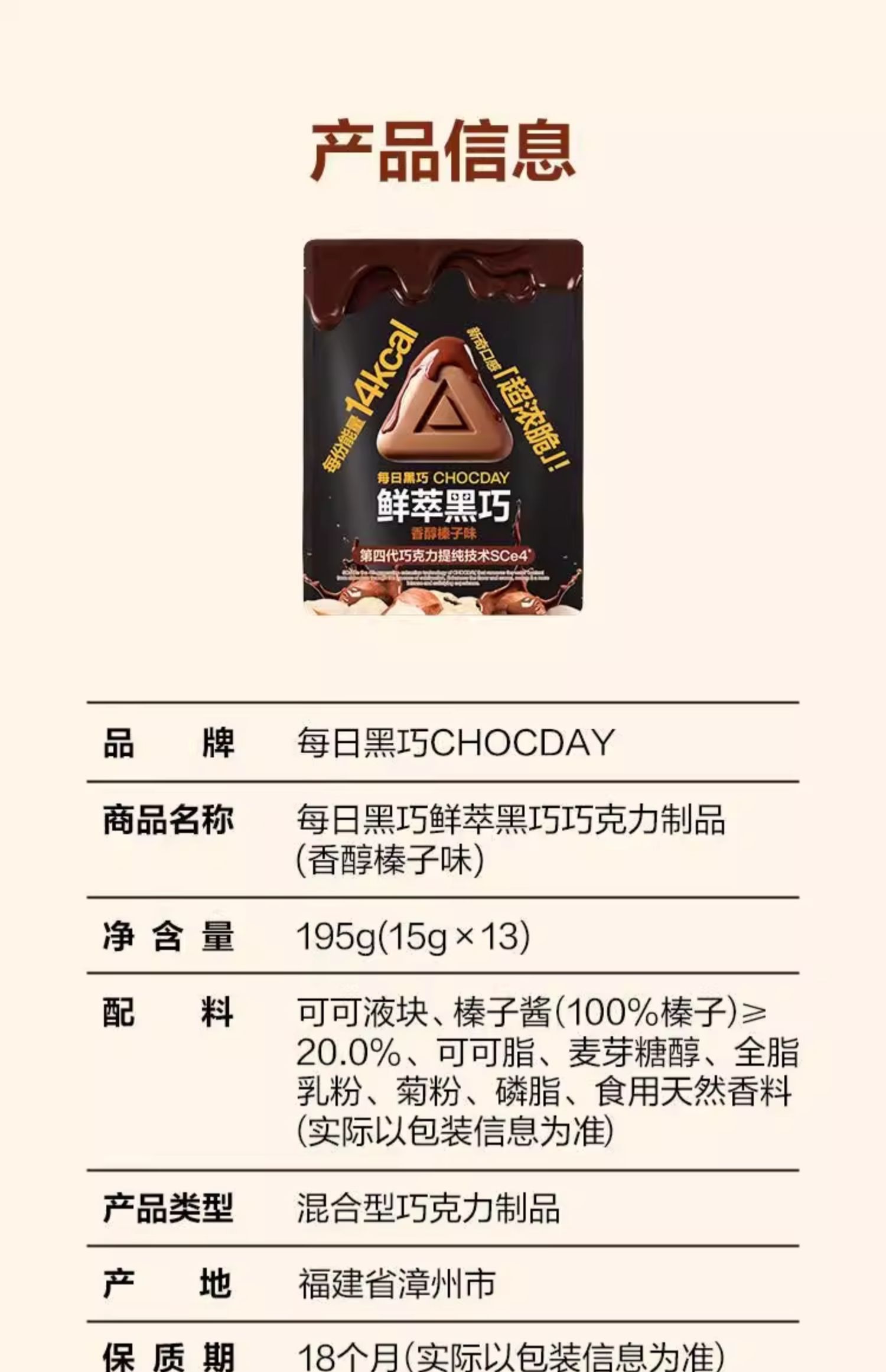 山姆每日黑巧鲜萃黑巧香醇榛子味