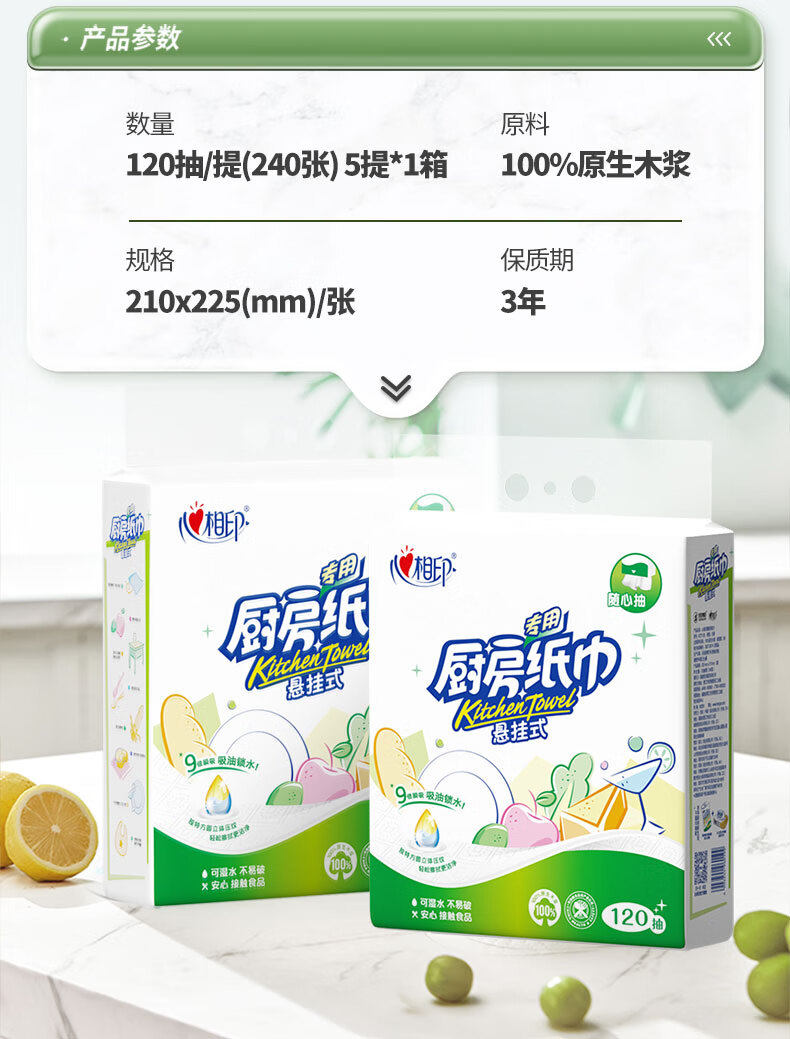 心相印120抽悬挂式提装厨房纸巾KDT1120