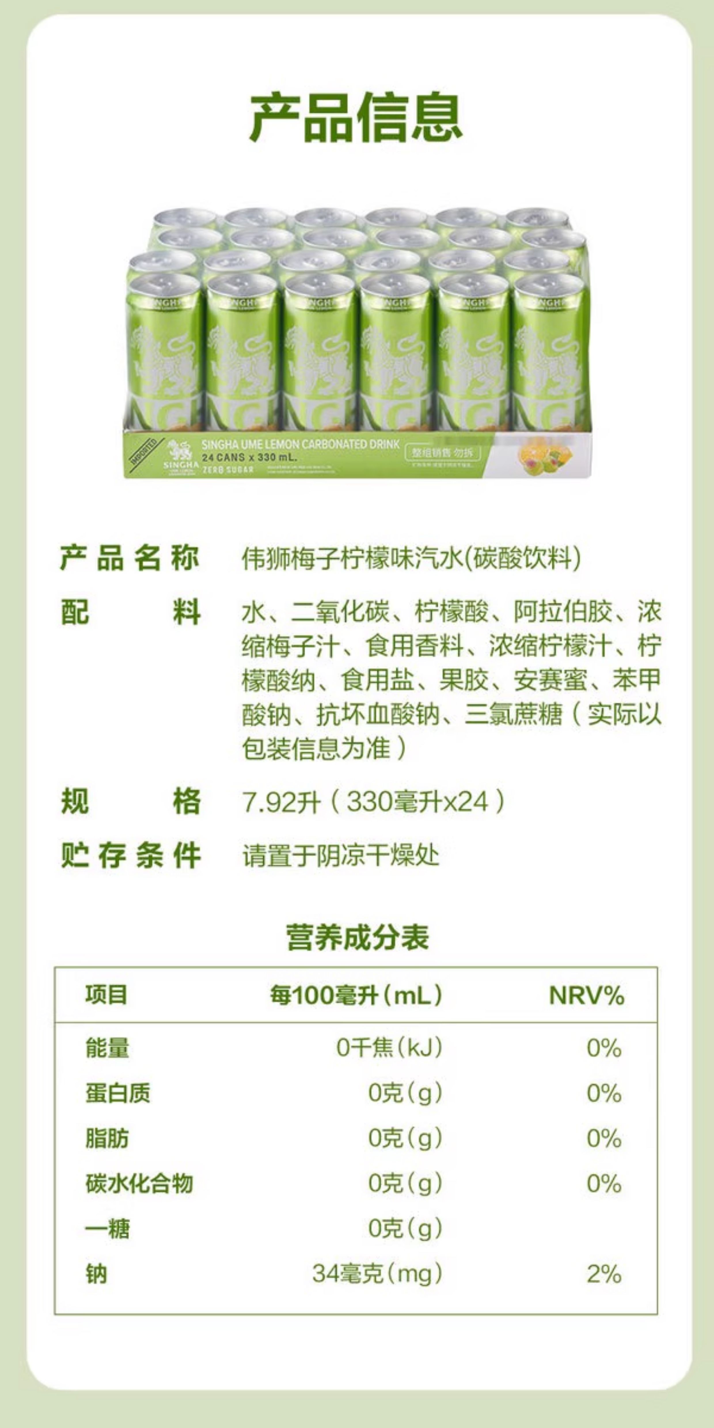山姆伟狮梅子柠檬味气泡水