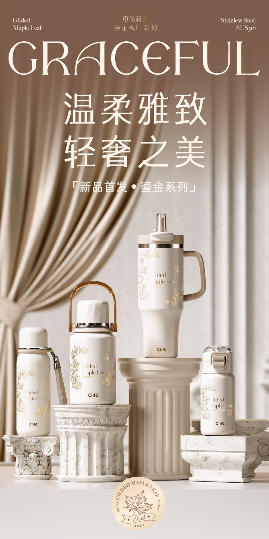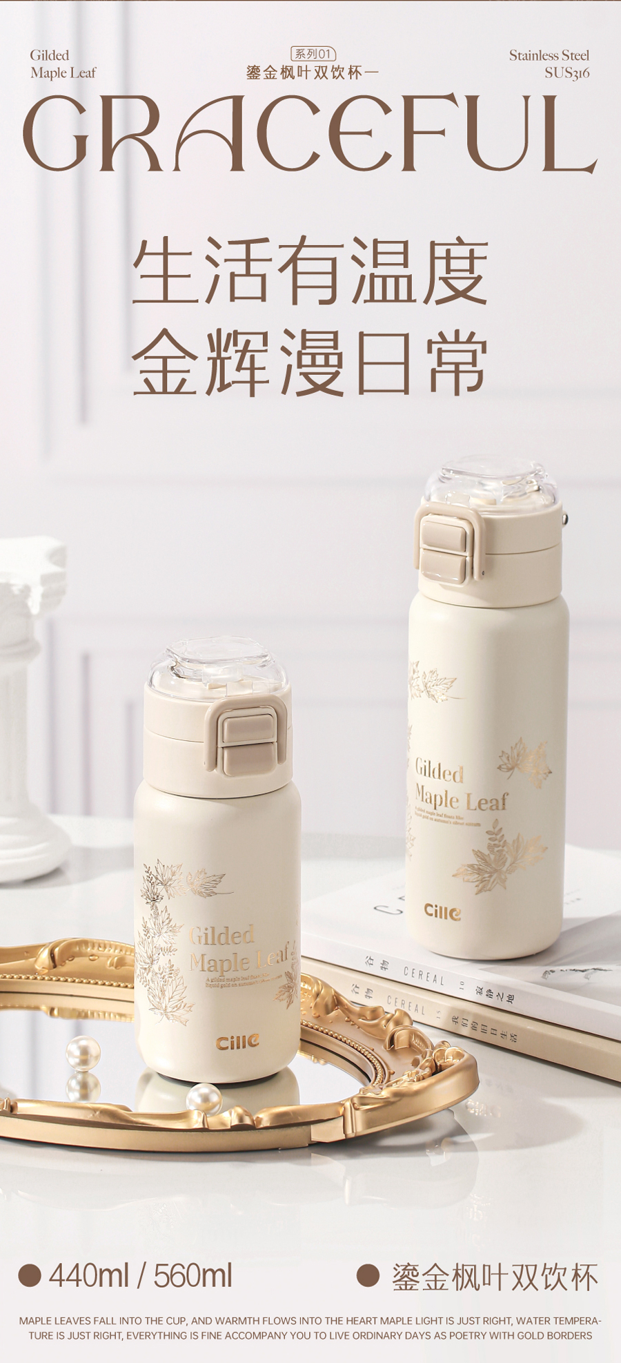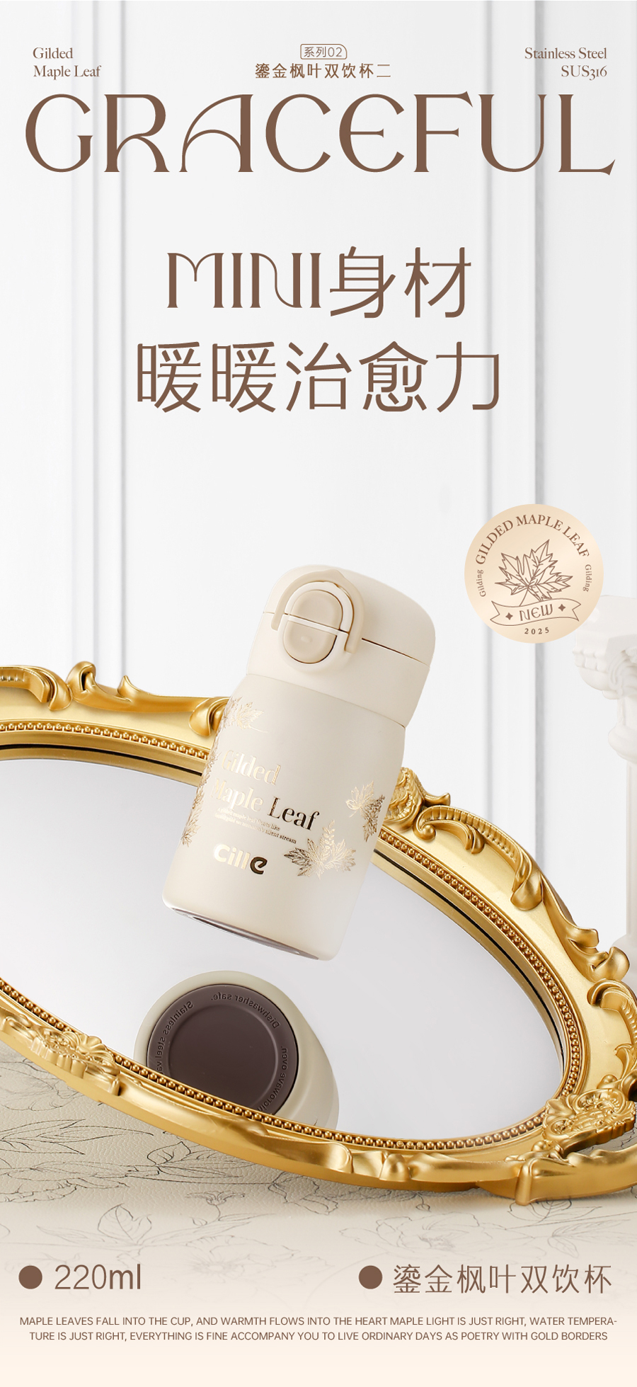 希乐鎏金枫叶双饮杯-鎏金白XBTLJ25105-560