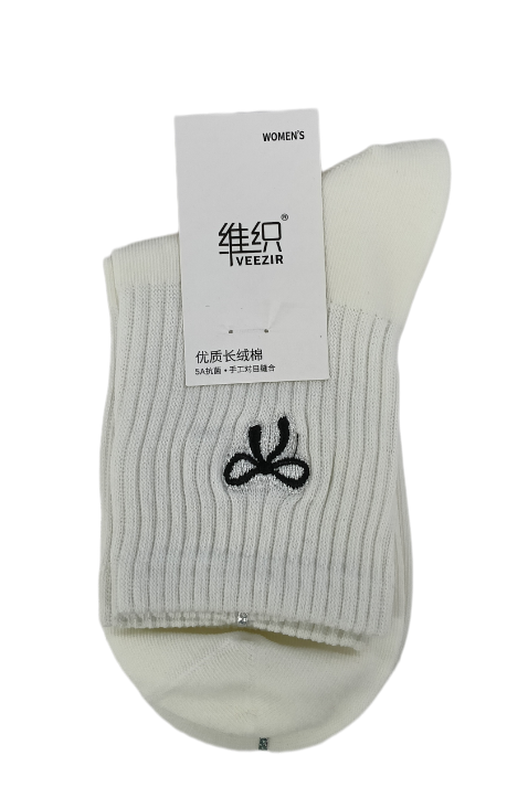 唯织手工对目长绒棉刺绣运动女袜3131-1