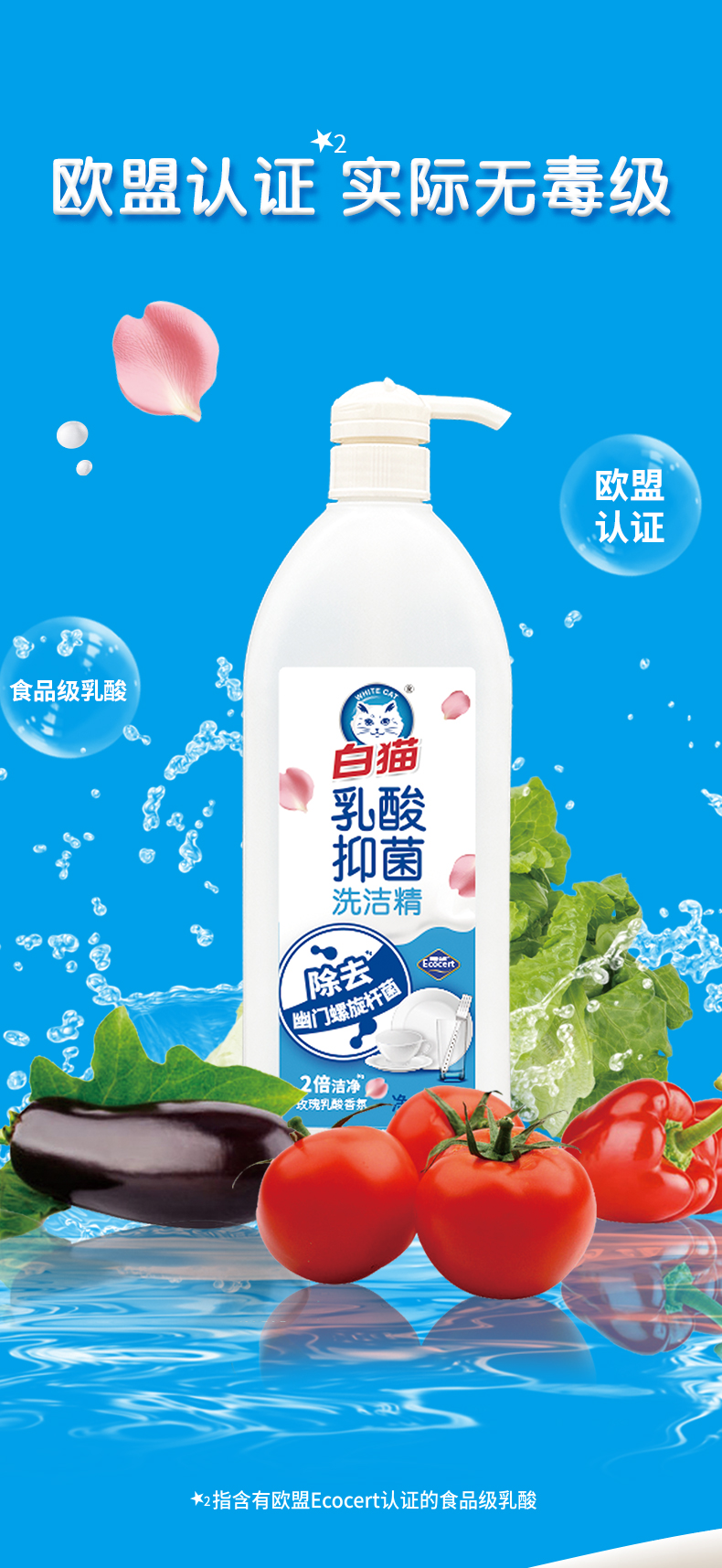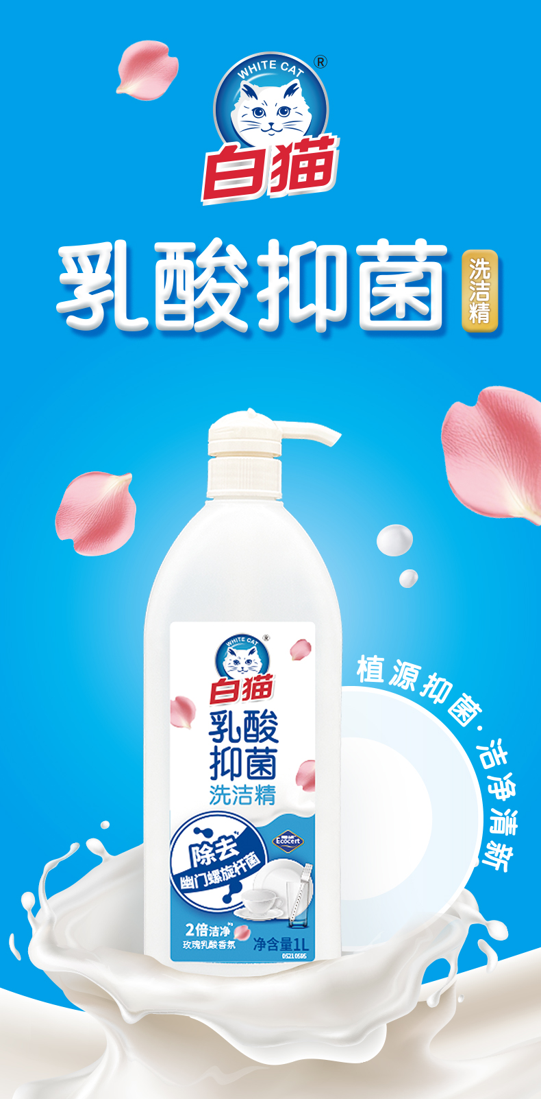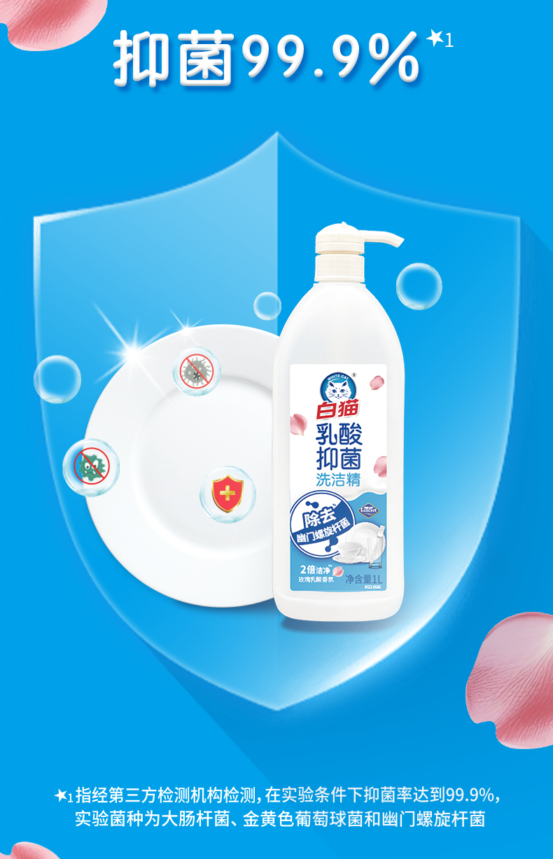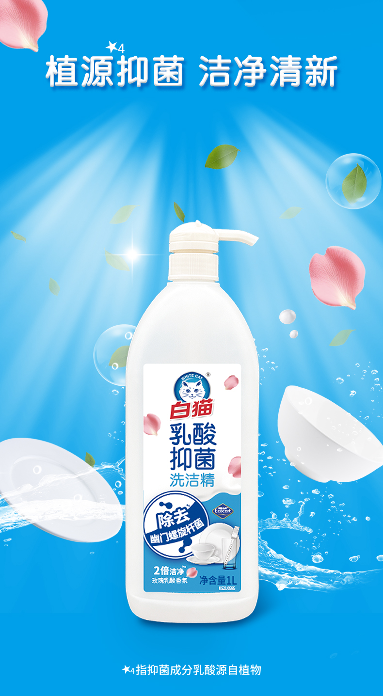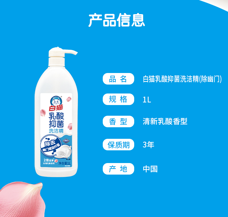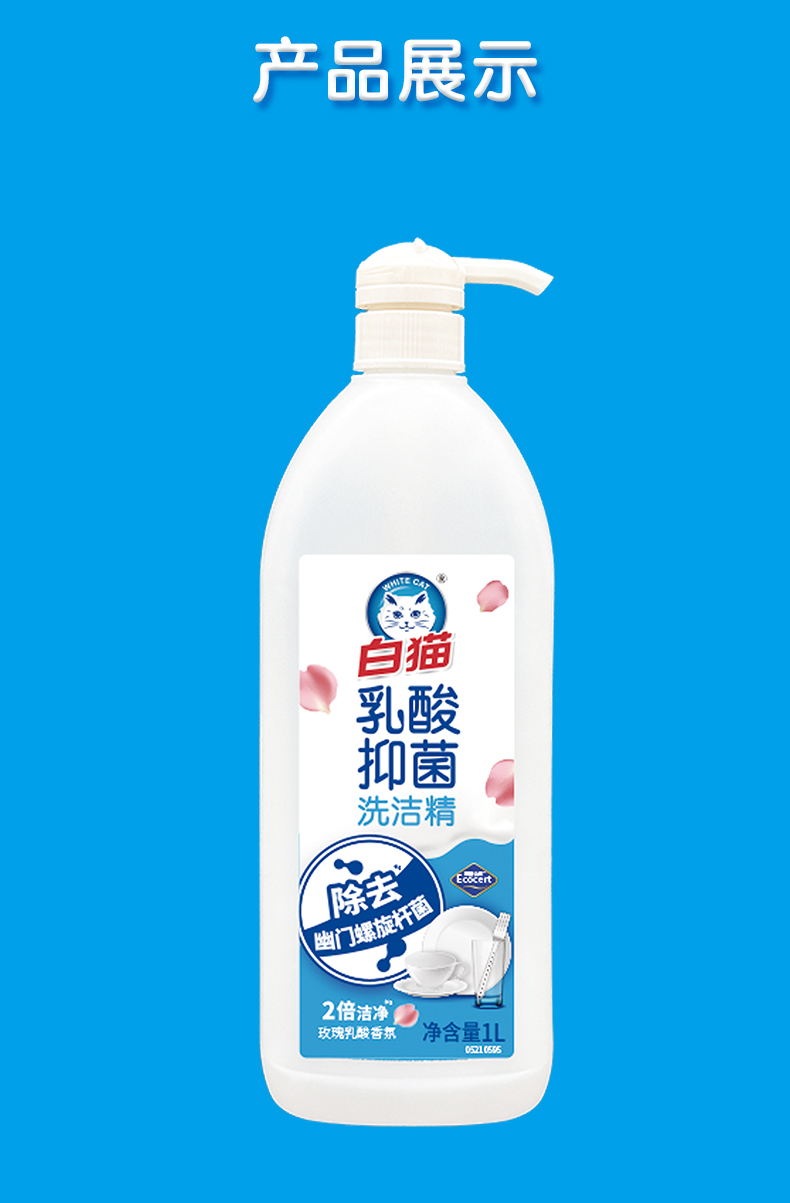 白猫乳酸抑菌洗洁精(玫瑰乳酸香氛)