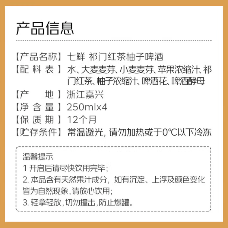 七鲜祁门红茶柚子啤酒