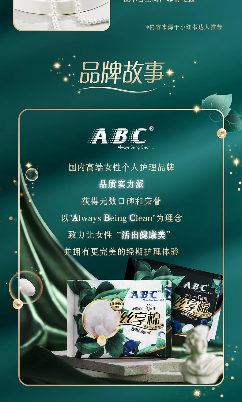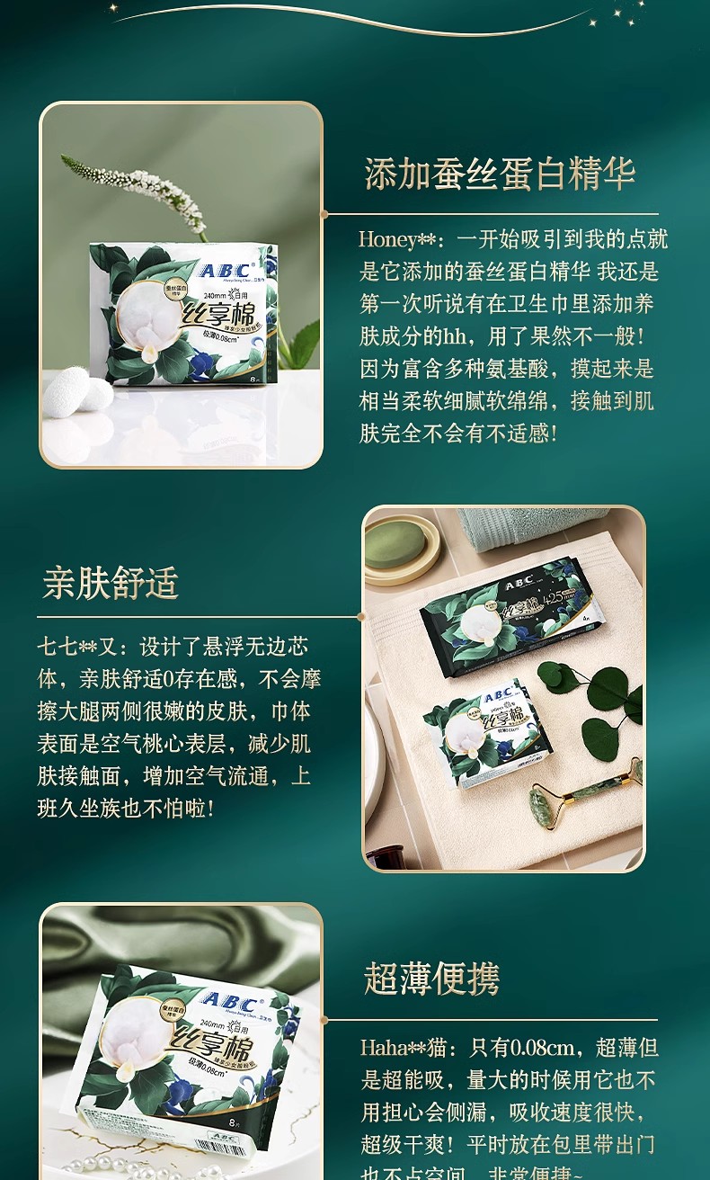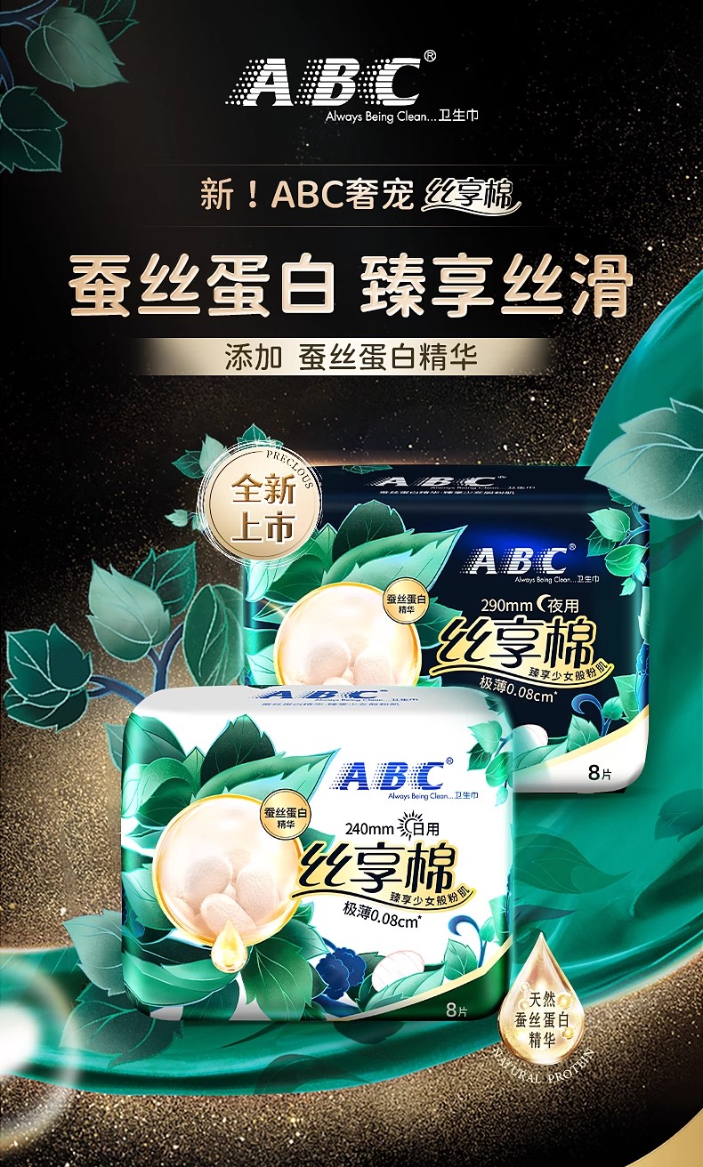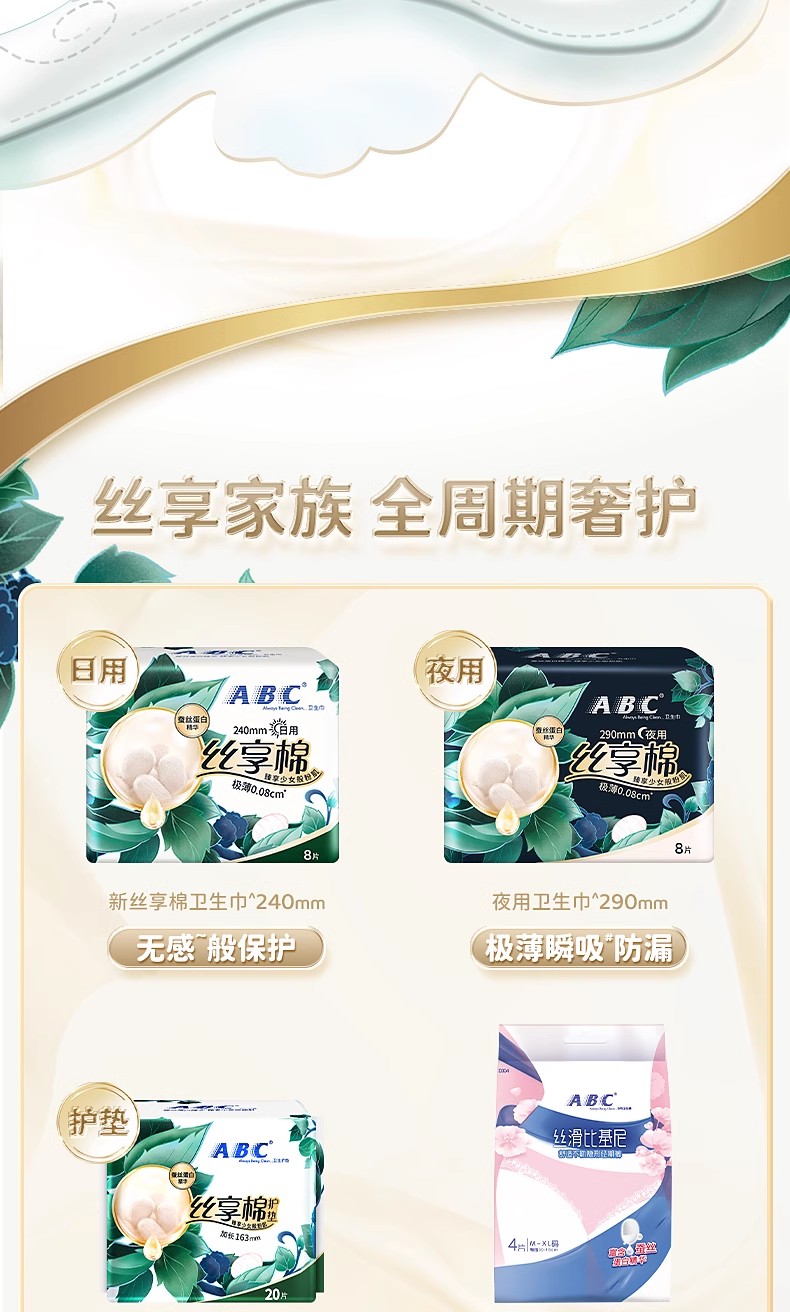 ABC日用极薄棉柔表层卫生巾(含蚕丝蛋白)