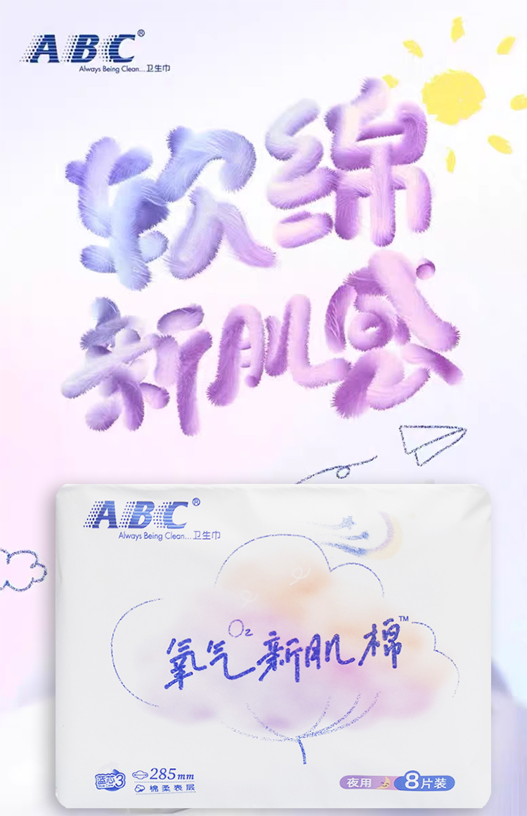 ABC 氧气新肌棉夜用纤薄棉柔表层卫生巾