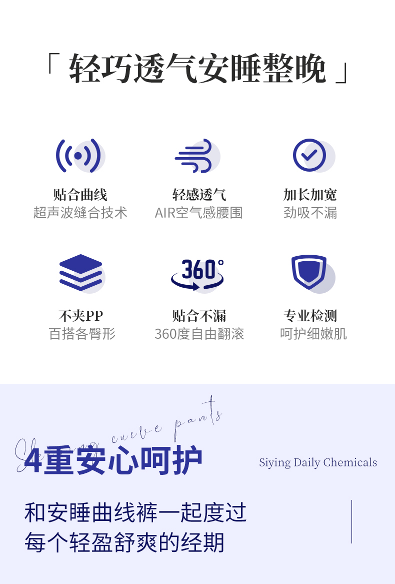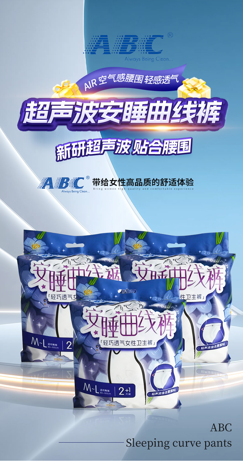 ABC超薄棉柔表层女性卫生裤M-L码(安睡曲线裤)