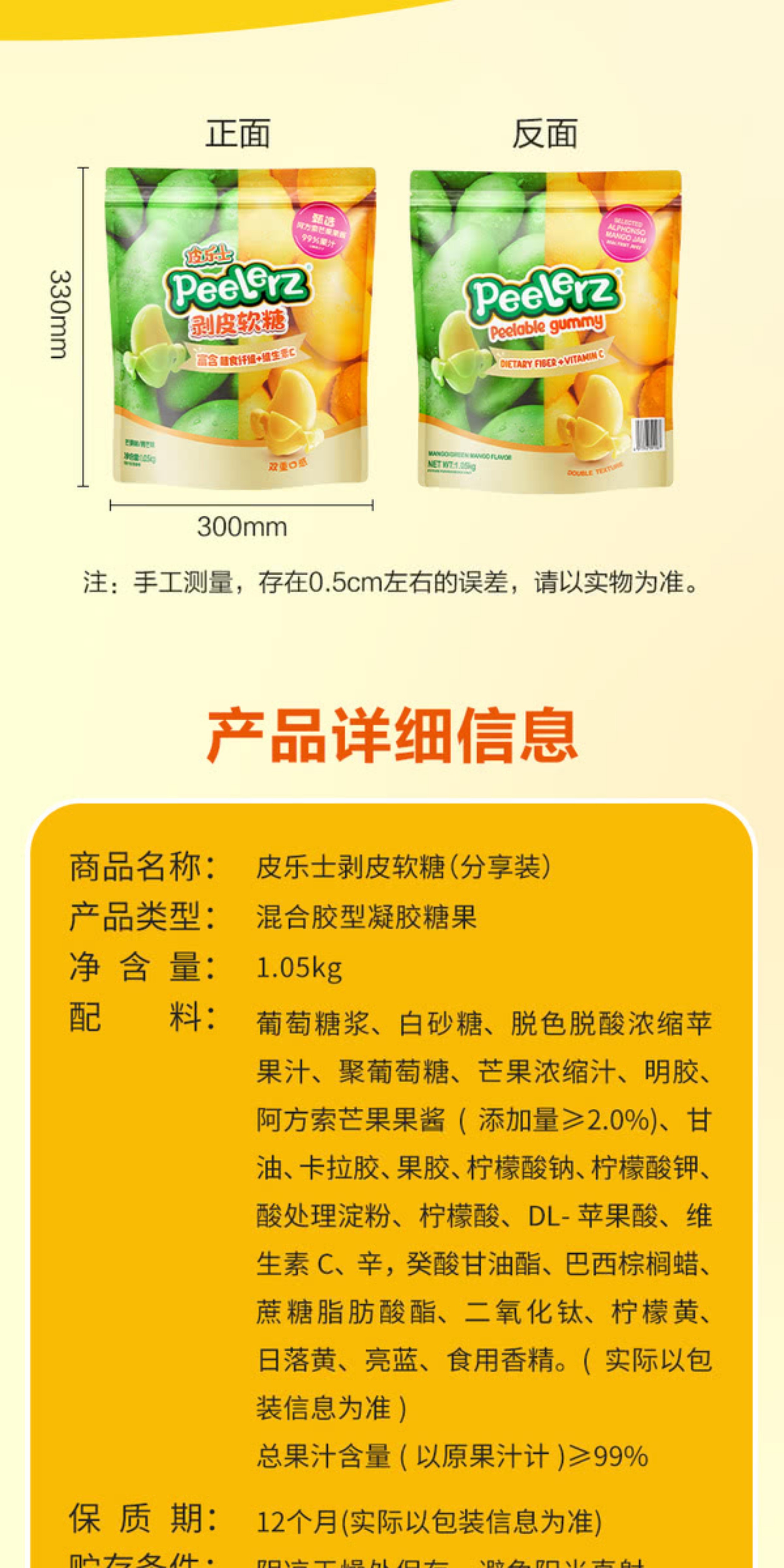 山姆皮乐士剥皮软糖(芒果味/青芒味)