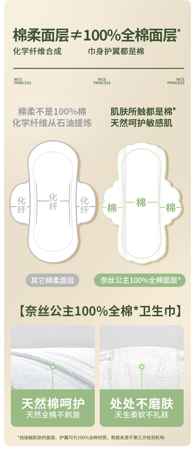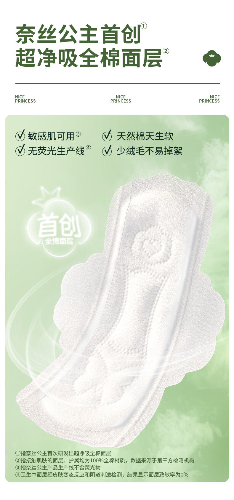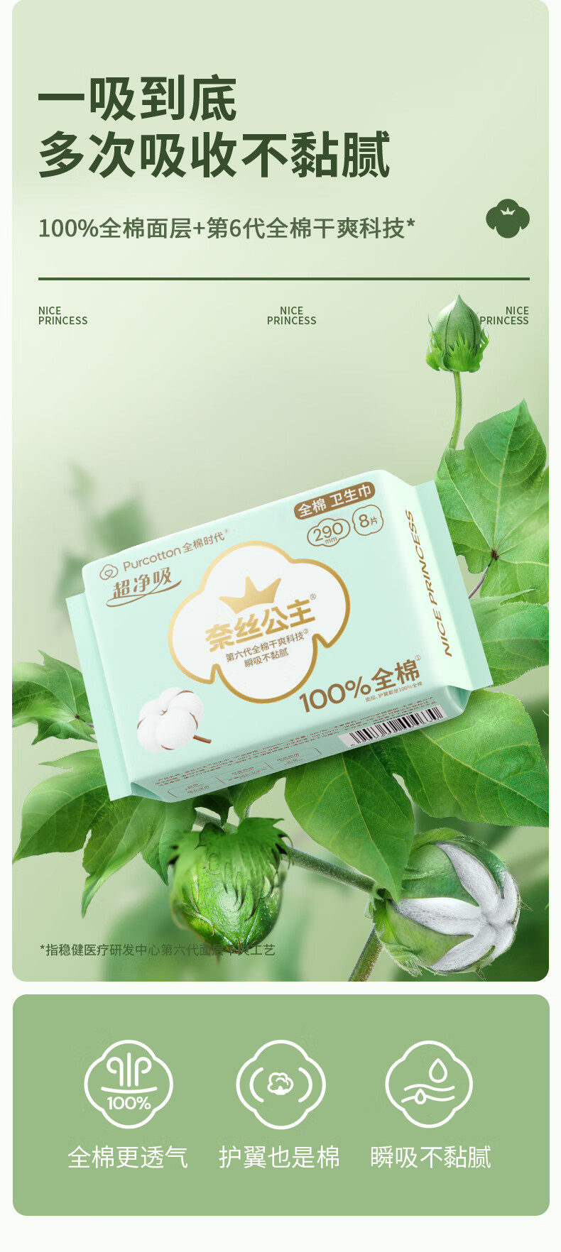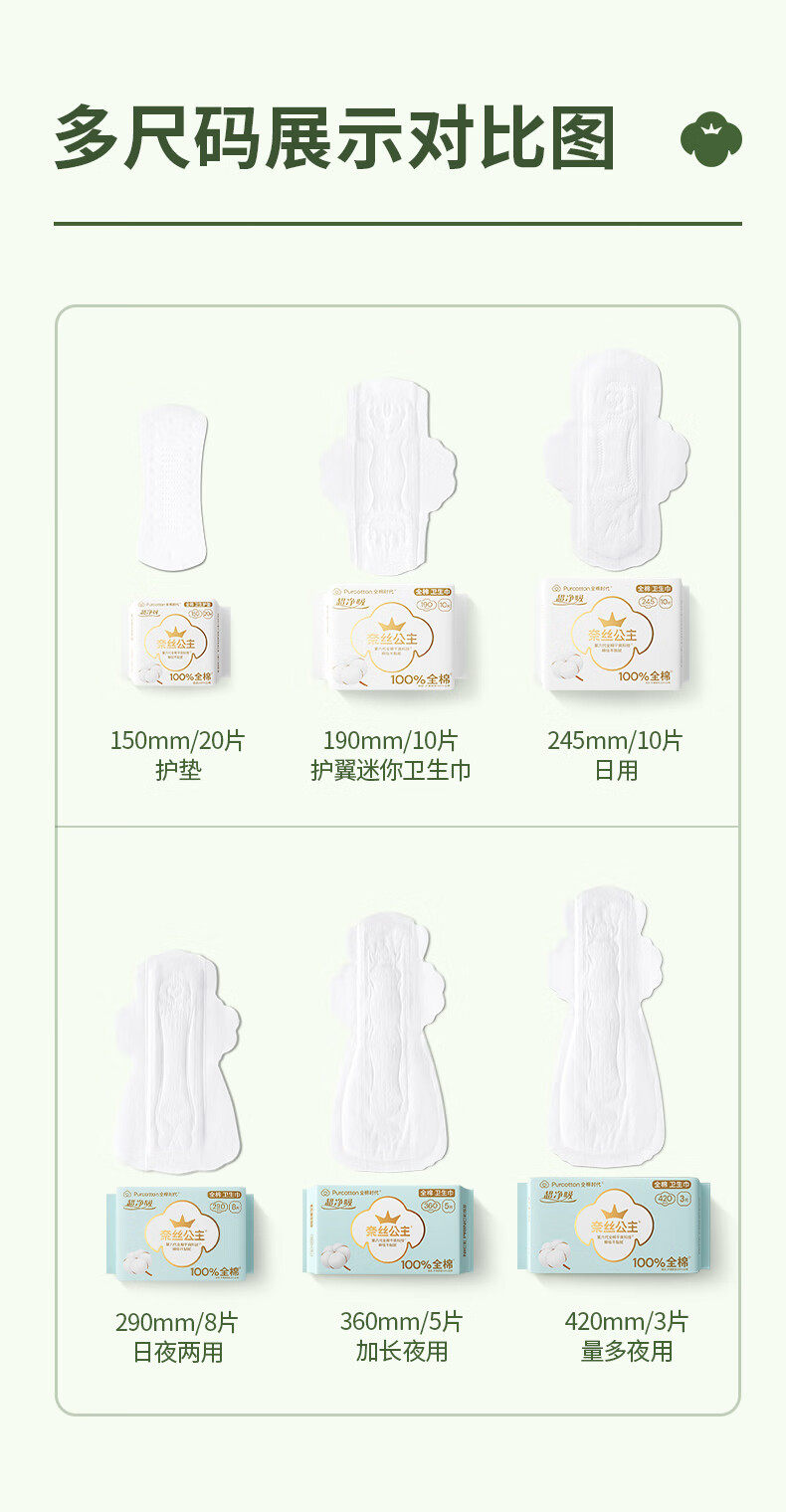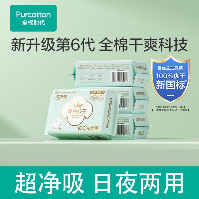 全棉时代奈丝公主超净吸日夜用超博卫生巾全棉亲肤