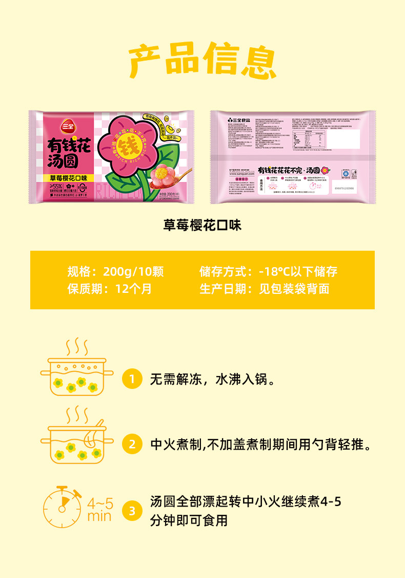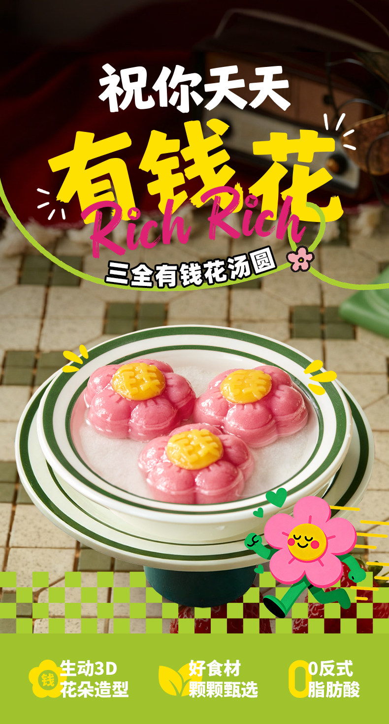 三全有钱花草莓樱花味汤圆