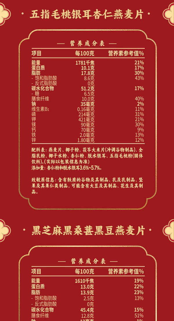 山姆桂格福禄寿喜食养燕麦礼盒