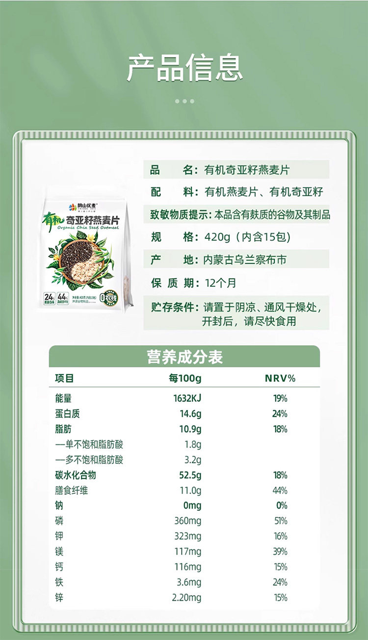 阴山优麦有机奇亚籽燕麦片