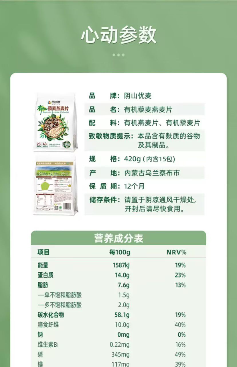阴山优麦有机藜麦燕麦片