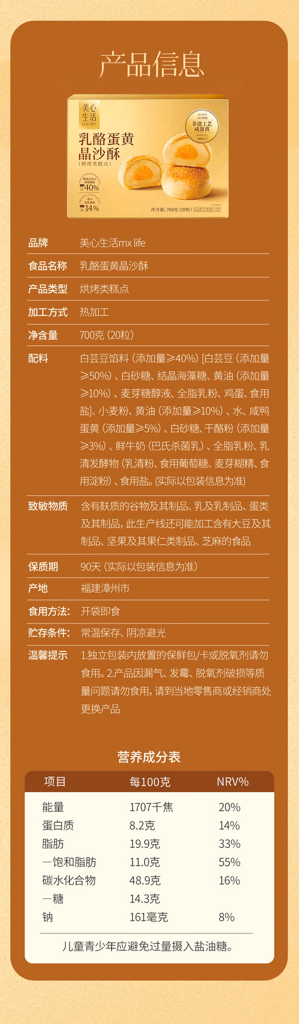 山姆美心生活乳酪蛋黄晶沙酥