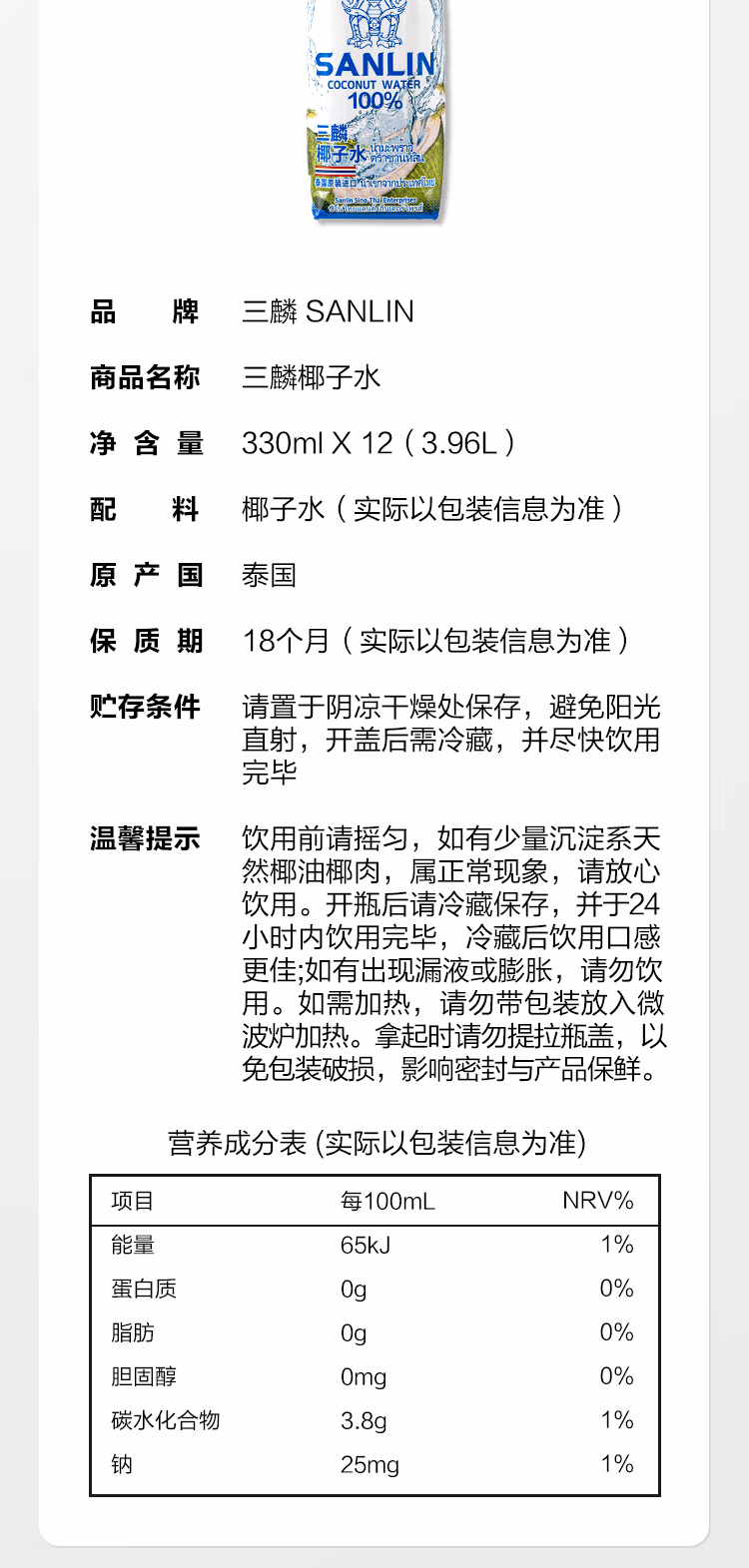 山姆三麟椰子水饮料