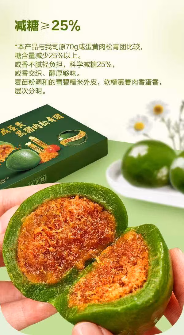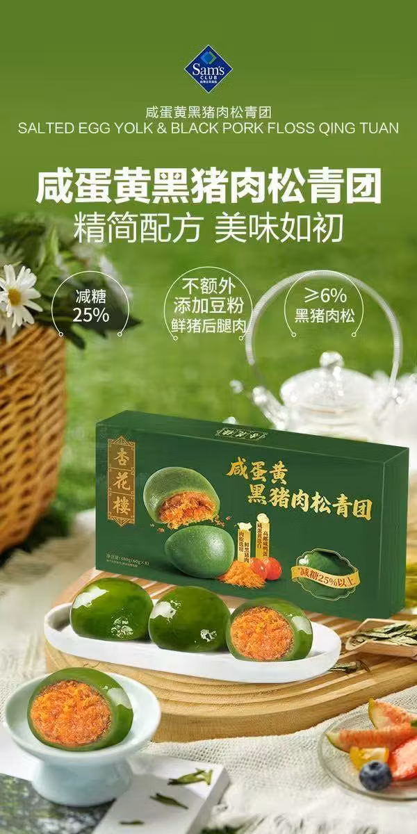 山姆杏花楼咸蛋黄黑猪肉松青团