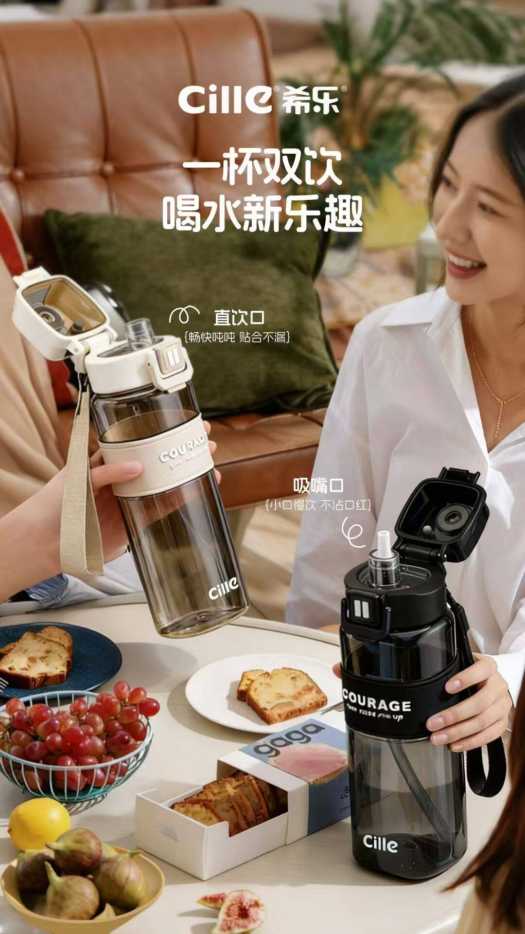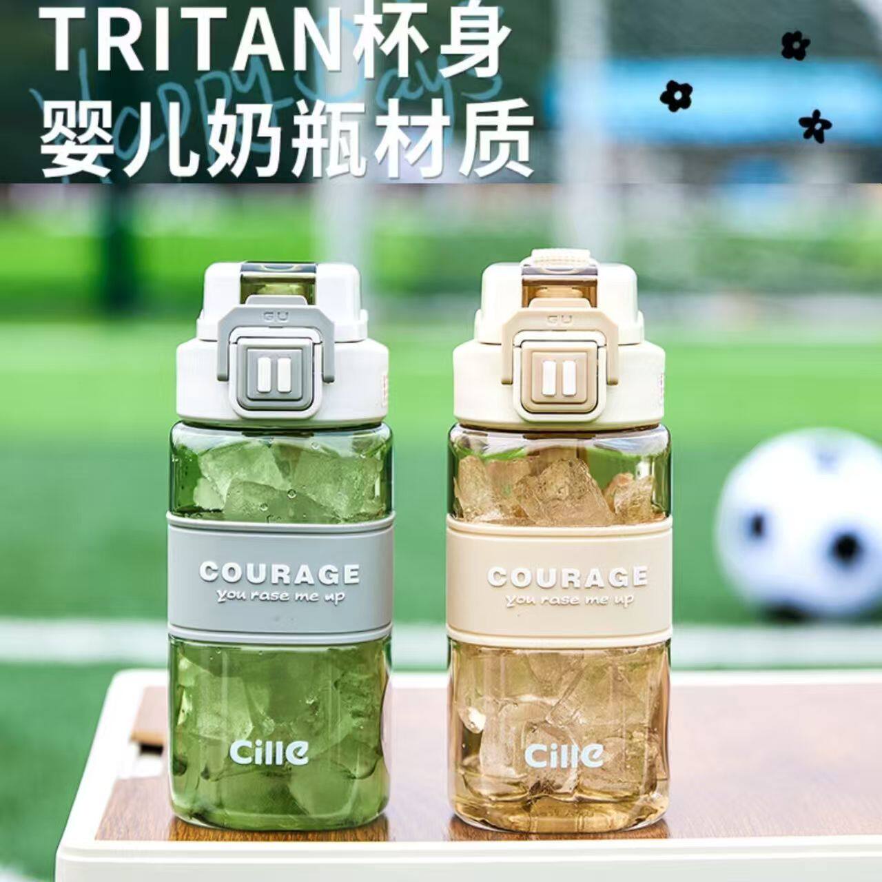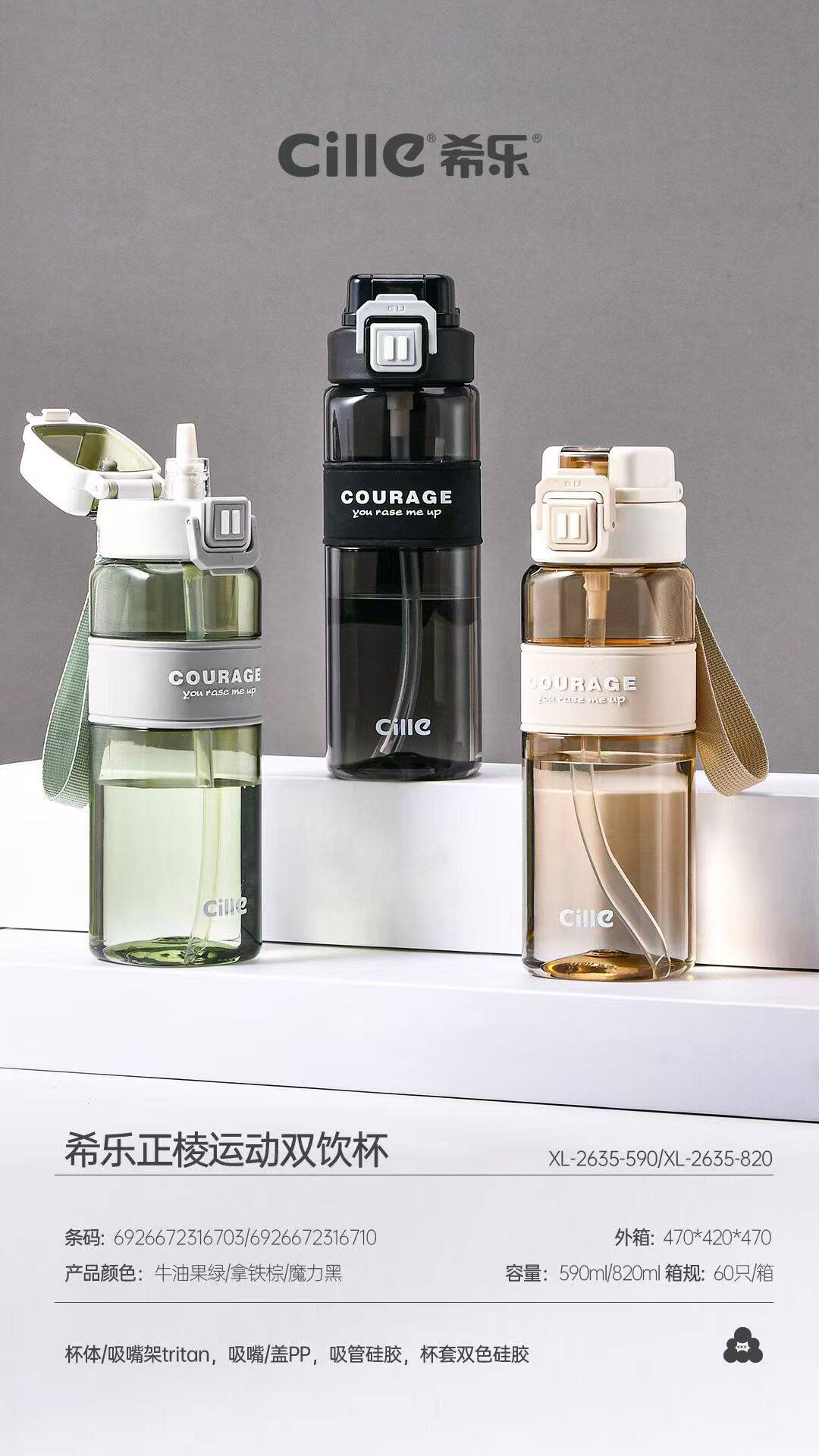 希乐正棱运动双饮杯XL-2635-820拿铁棕/牛油果绿/魔力黑