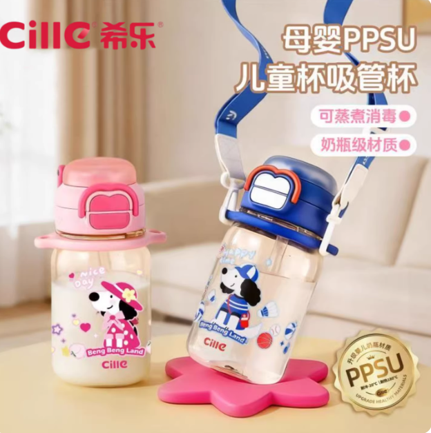 希乐蹦蹦乐园PPSU双饮杯XL-2601-600-萌趣粉/活泼蓝
