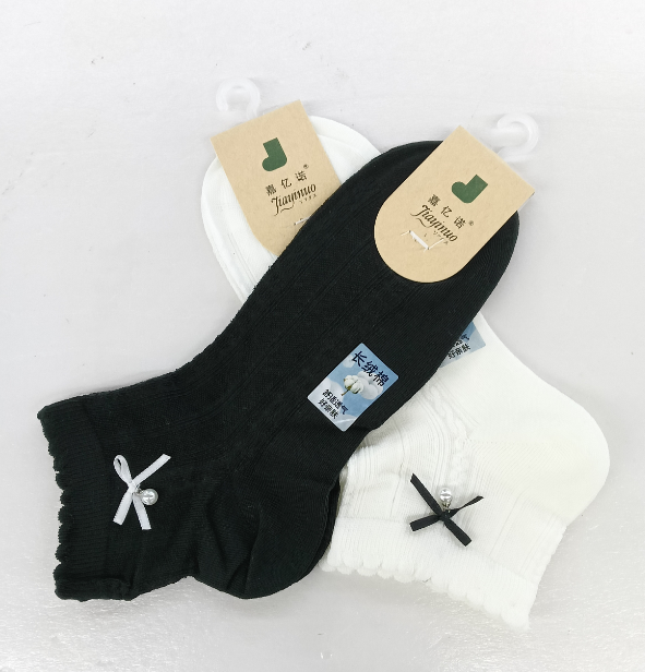 嘉亿诺261H3308珍珠蝴蝶结女船袜