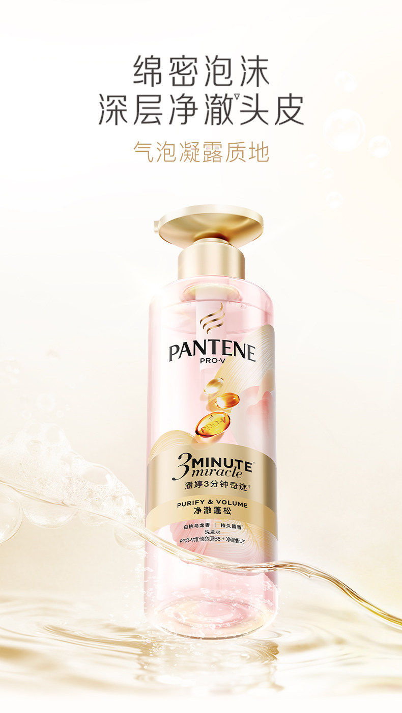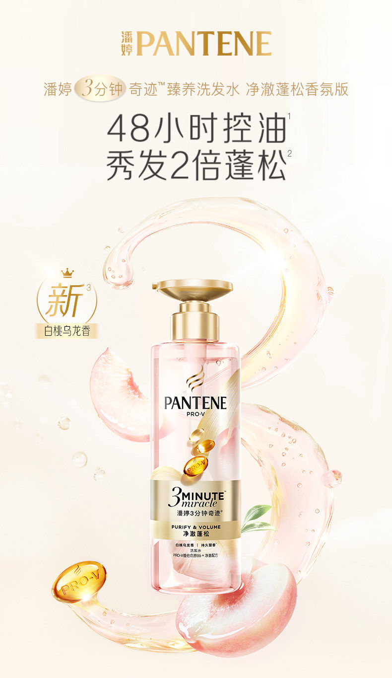 潘婷3分钟奇迹洗发水净澈蓬松白桃乌龙香