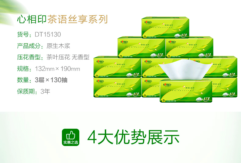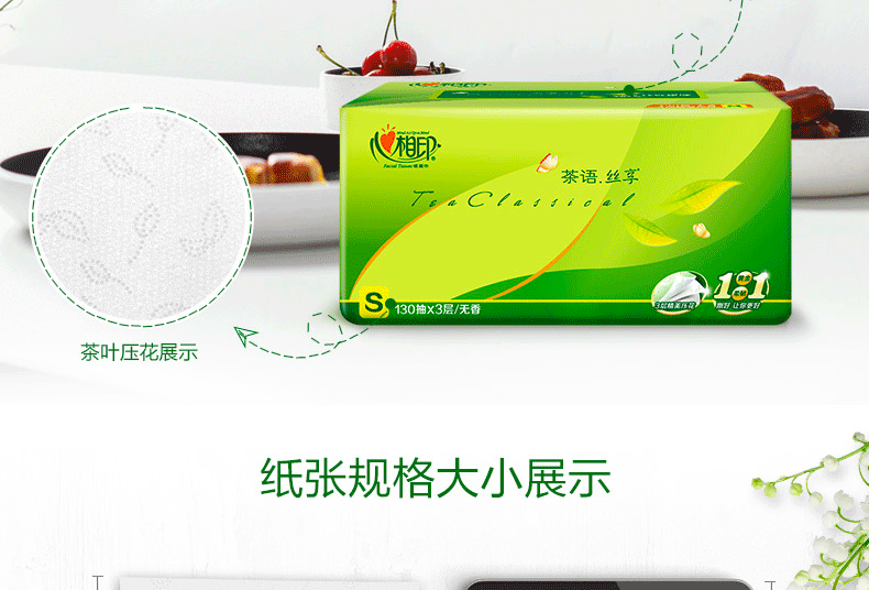心相印茶语抽纸 三层130抽面巾纸 1提10包