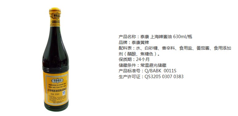 泰康黄牌上海辣酱油