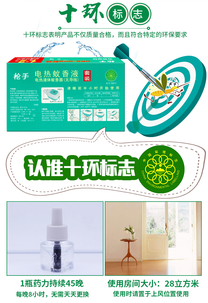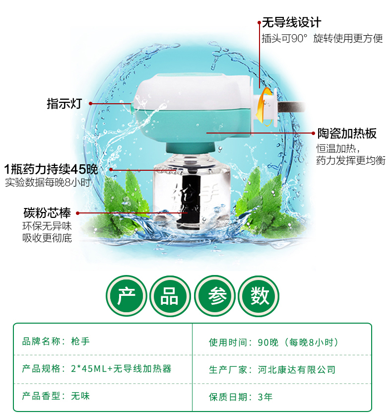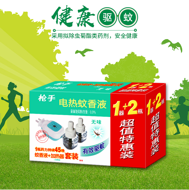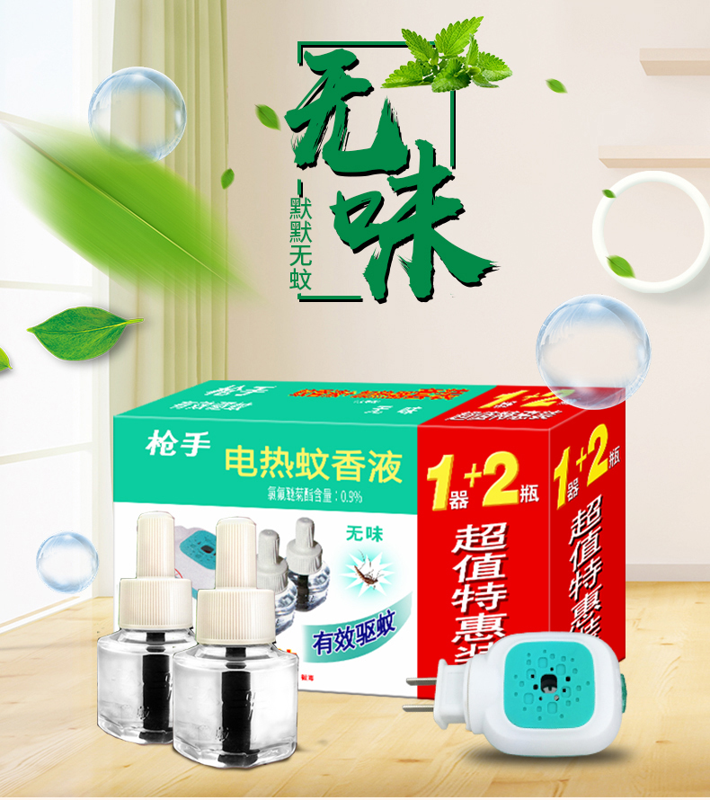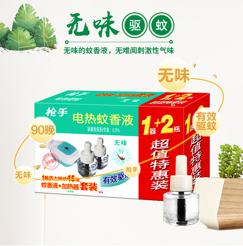 枪手无味蚊香液+蚊香器1器2液促销装