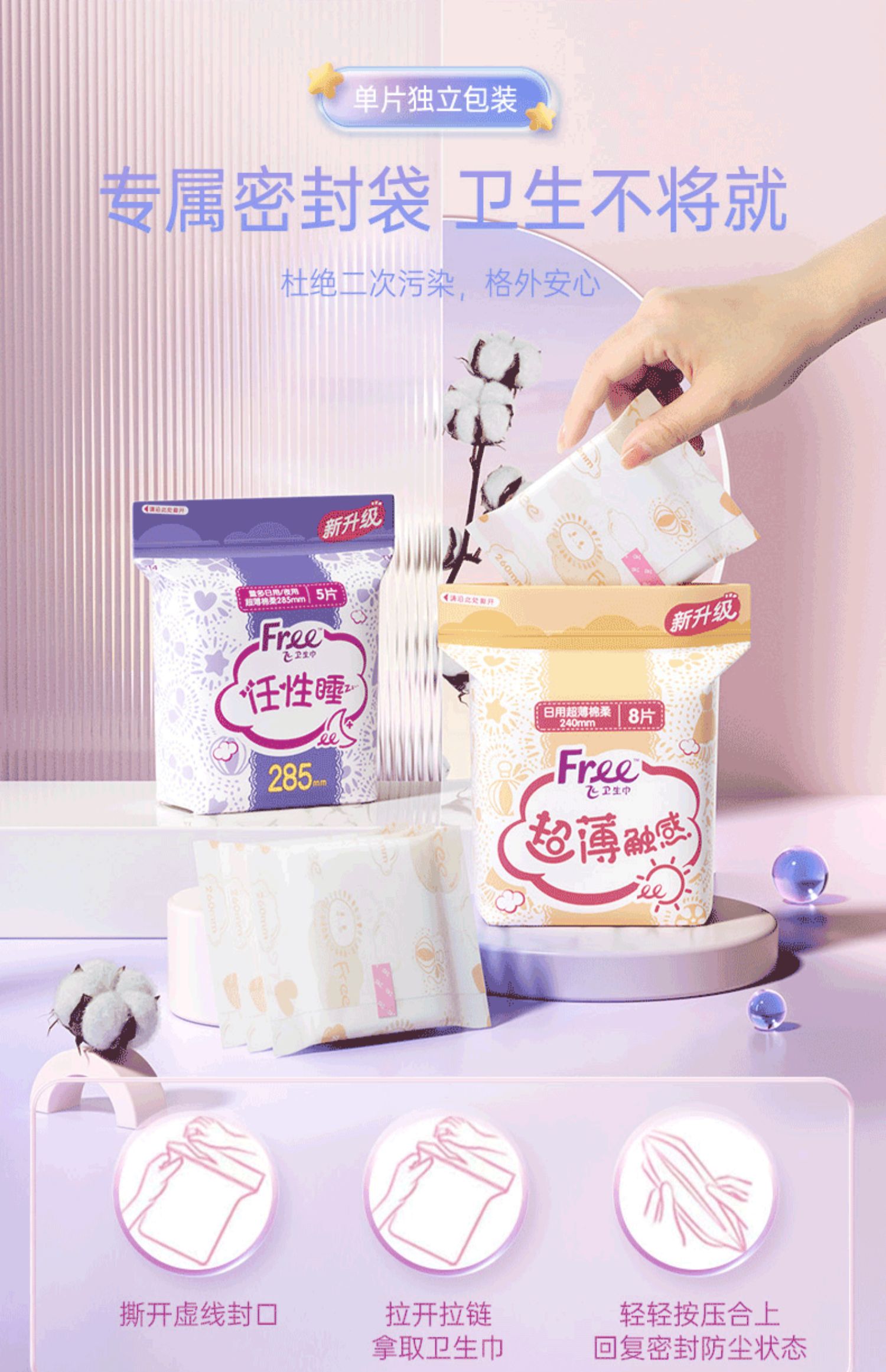 Free.飞日用超薄棉柔卫生巾